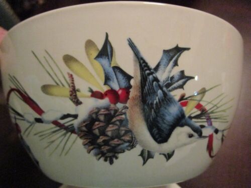 LENOX COVERED CASSEROLE CHRISTMAS GREETINGS CHRISTMAS BIRDS 5 X 6 1/2" [*POTT6BSKTRACK5] BY CATHERINE MC CLUNG SIGNED? ? ?VERY GOOD CONDITION