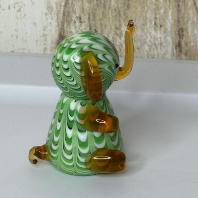 Keywords: Lenox glass elephant, glass elephant figurine, green white elephant, amber glass accent, murano style glass, swirl glass art, animal figurine, desk decor, shelf decor, collectible gift, handmade glass, art glass, home accent, elephant collectible