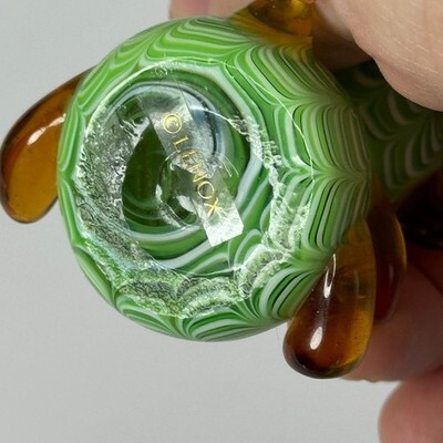 - Lenox Glass Elephant Figurine Green White Amber Swirl Murano Style Collectible