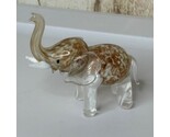 Keywords: glass elephant figurine, hand blown glass, animal sculpture, desk decor, shelf decor, collectible animal, swirl glass, brown and white, trunk up elephant, charming figurine, gift for animal lover, home accent, decorative item, unique art