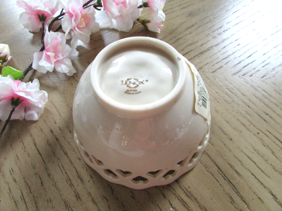 - Lenox Heart Bowl Pierced 24 kt Gold Rim Ivory Made in USA 4.25"W w/Tag