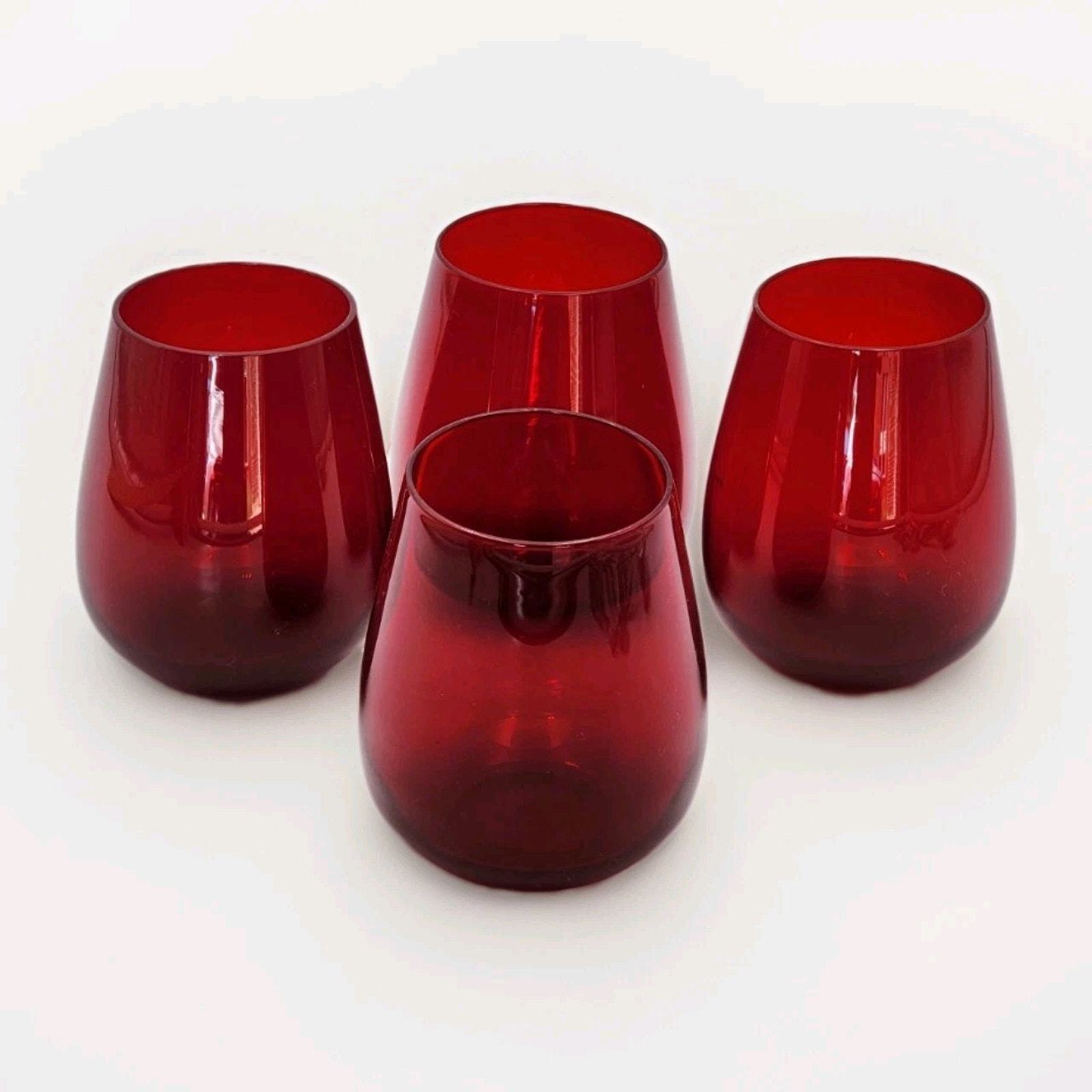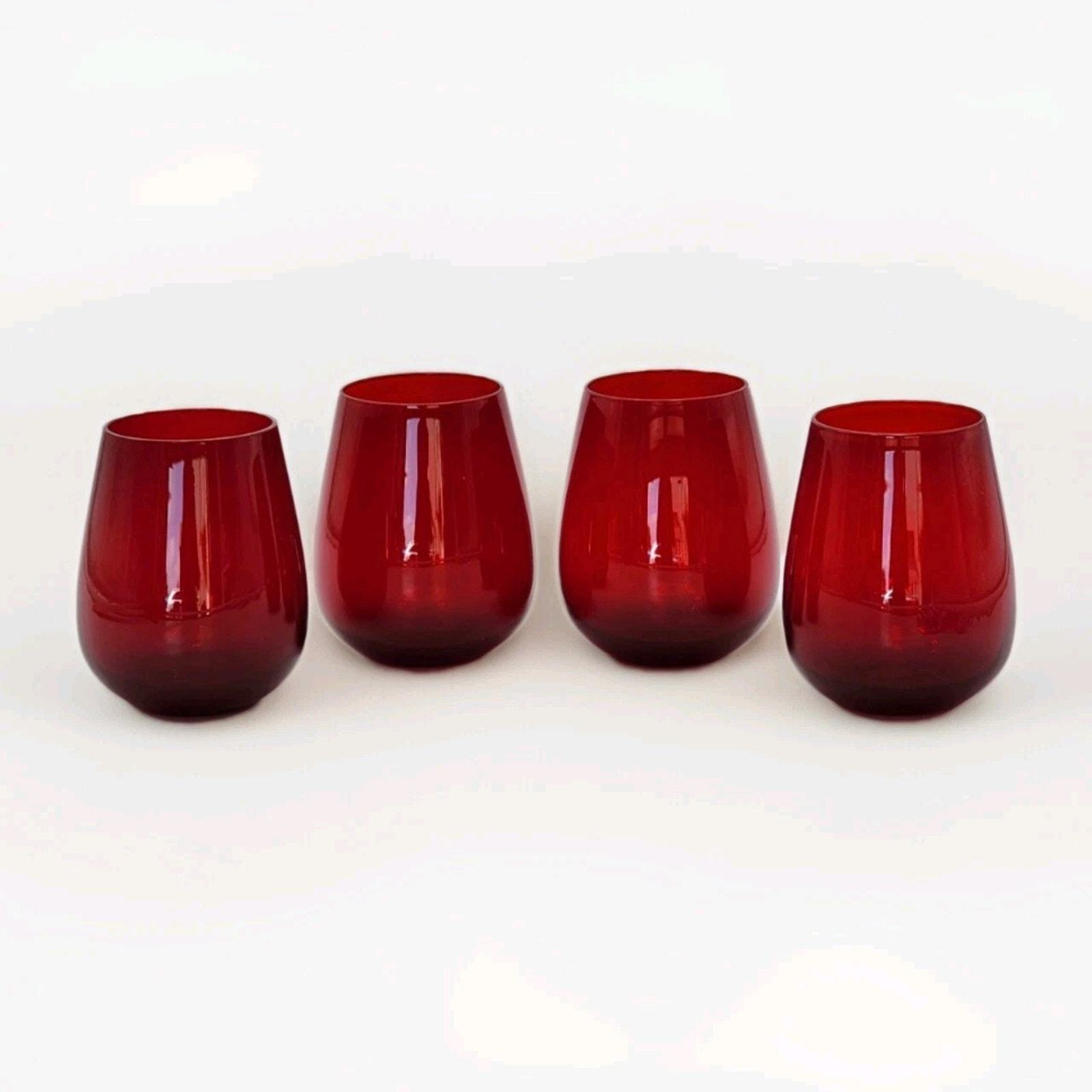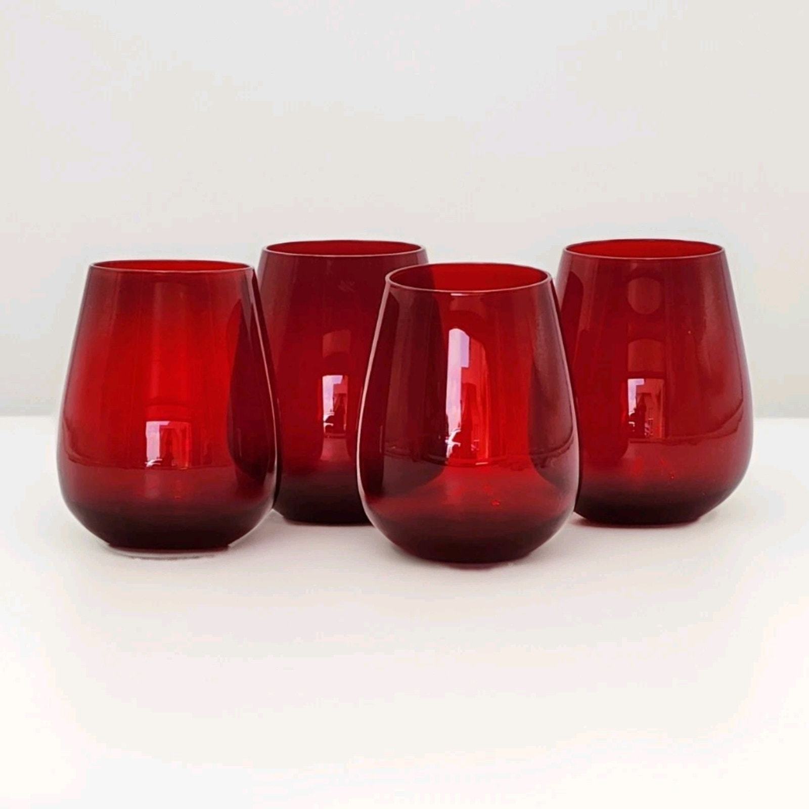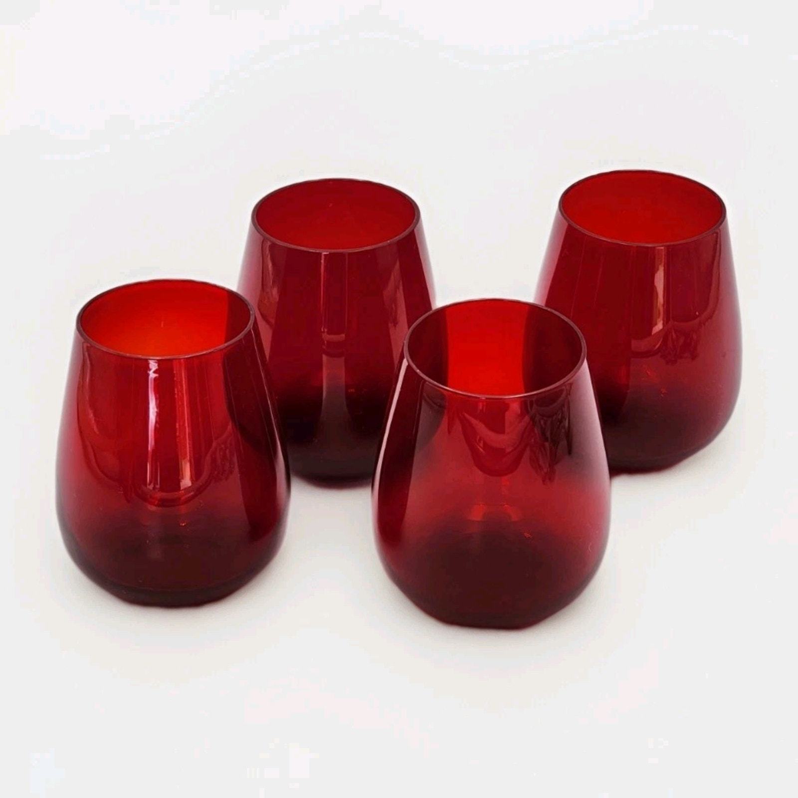 - Lenox Holiday Gems Ruby Stemless Wine Glasses 4 Pc Set 4 3/8" Tall W/Stickers