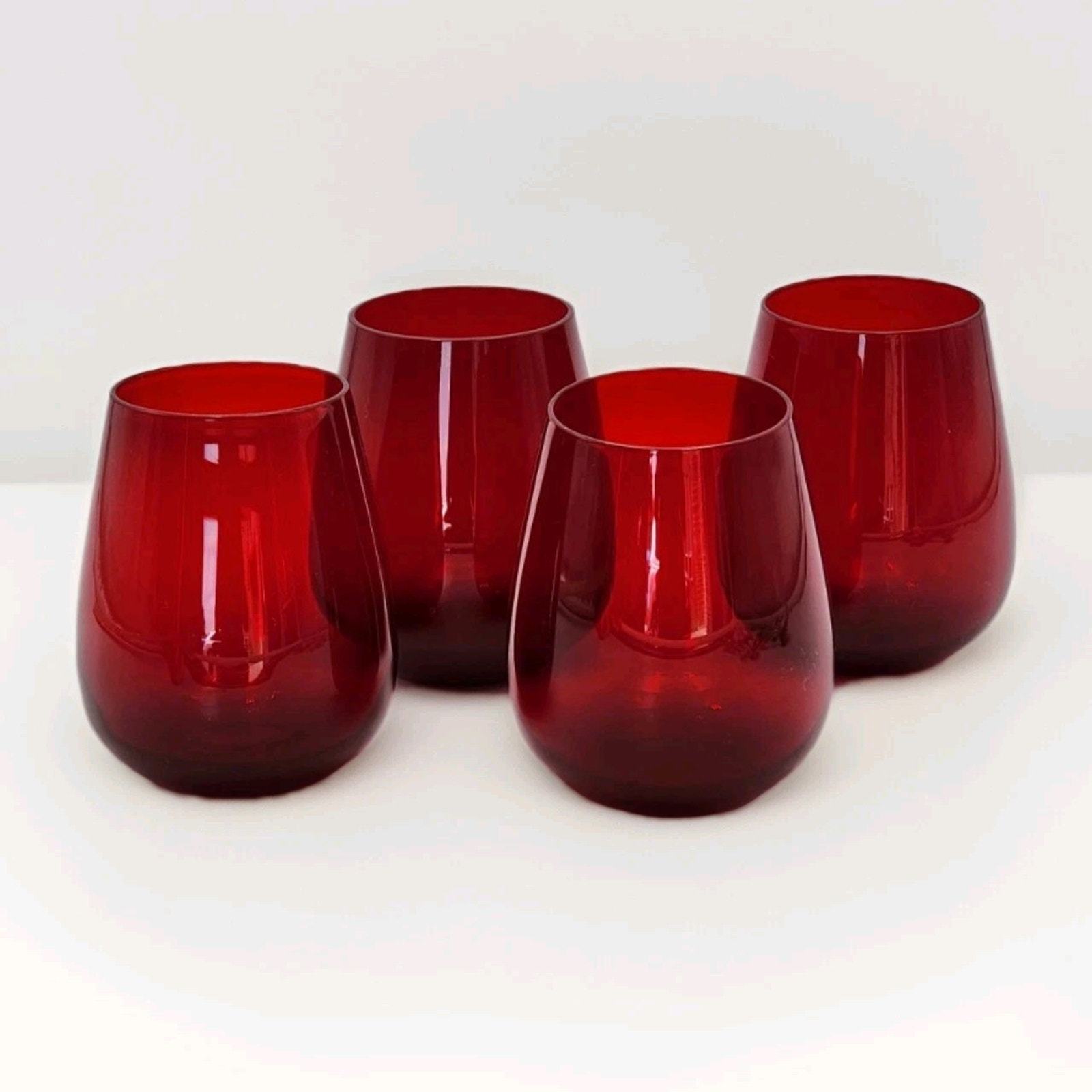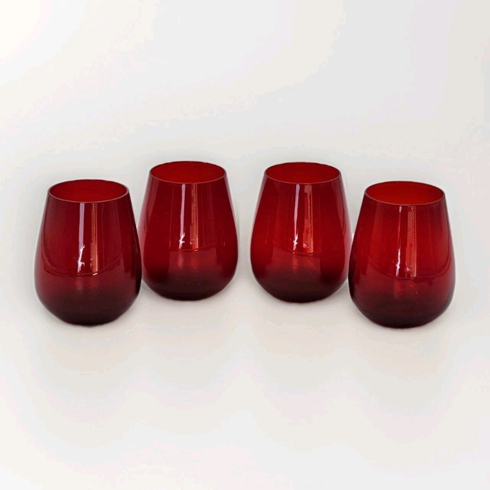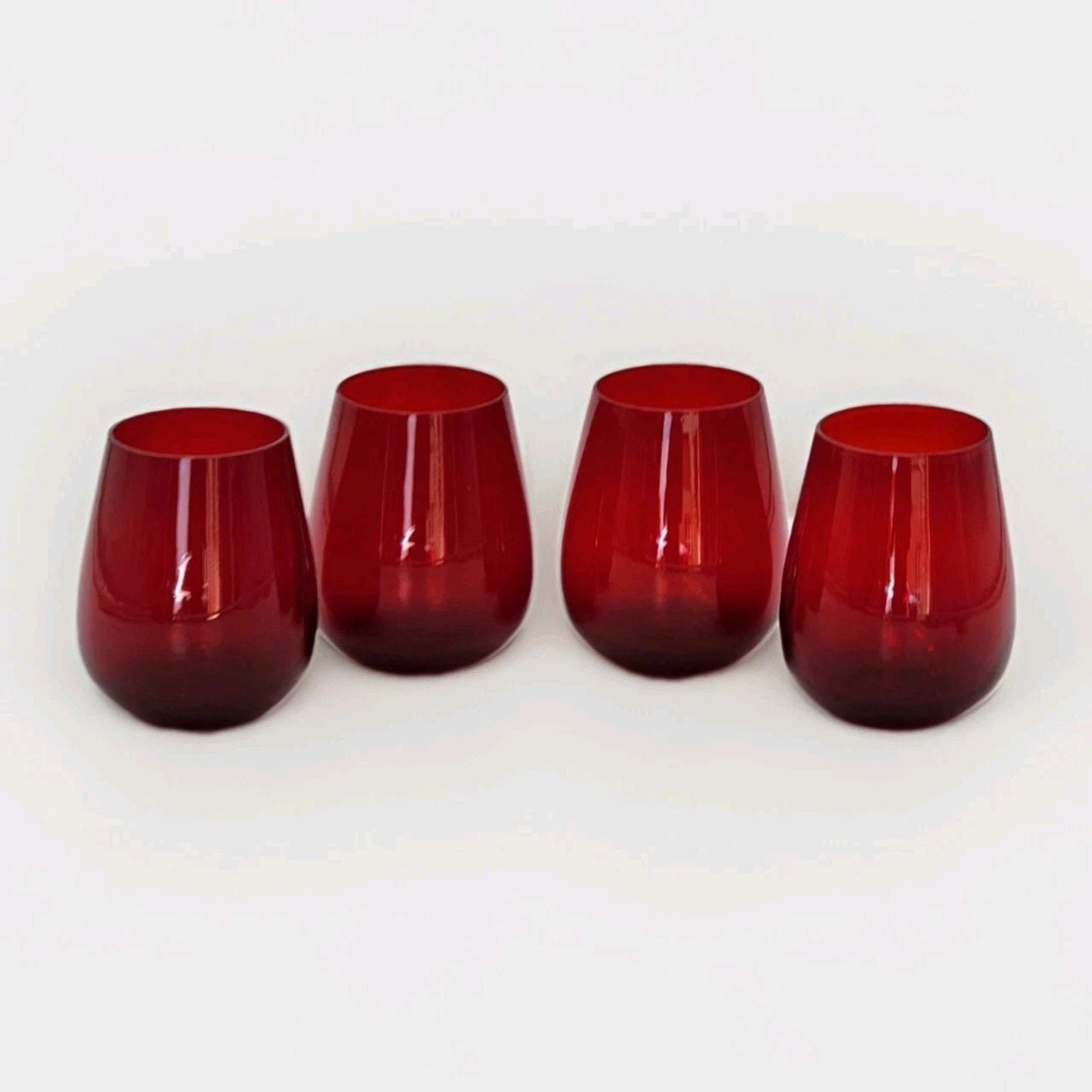 - Lenox Holiday Gems Ruby Stemless Wine Glasses 4 Pc Set 4 3/8" Tall W/Stickers