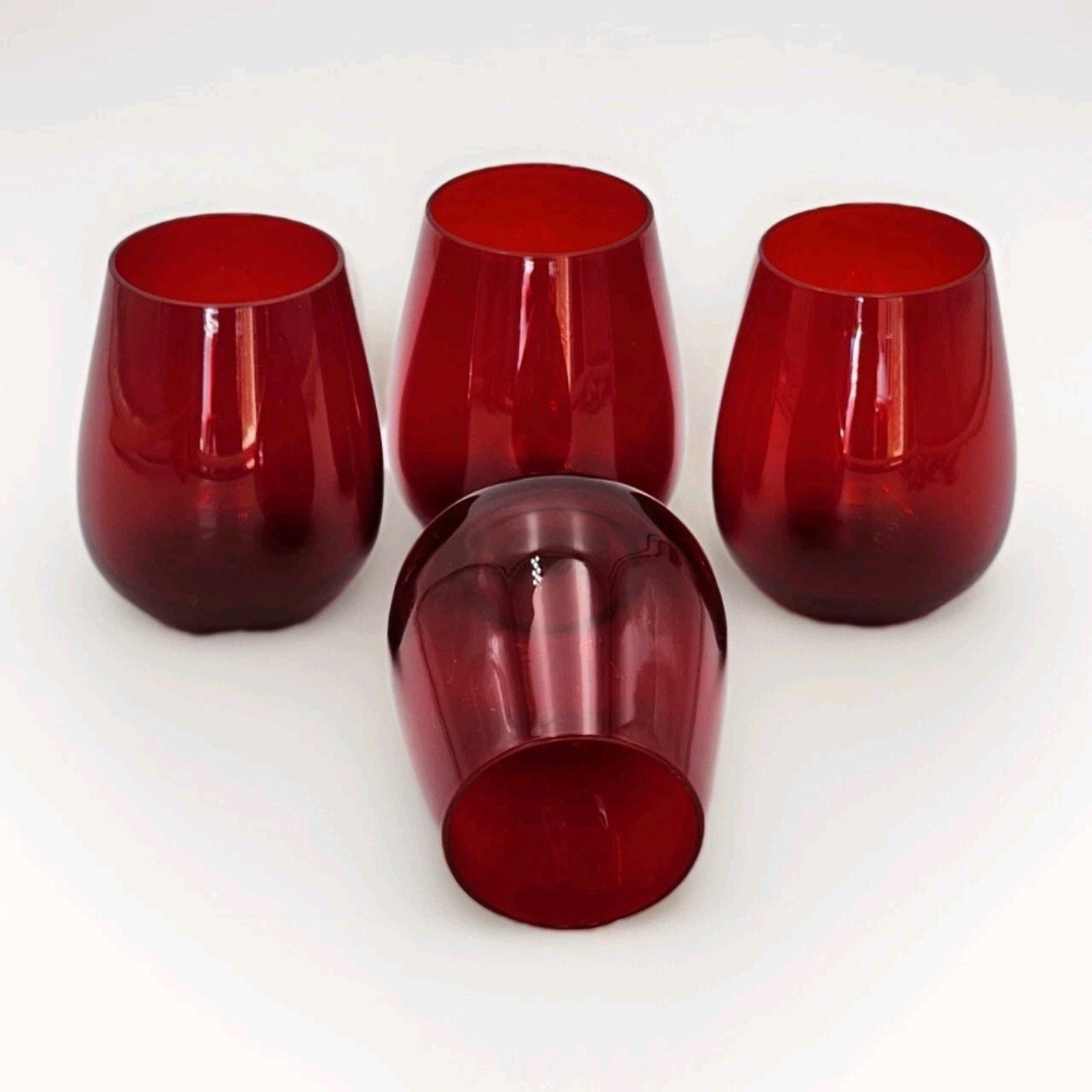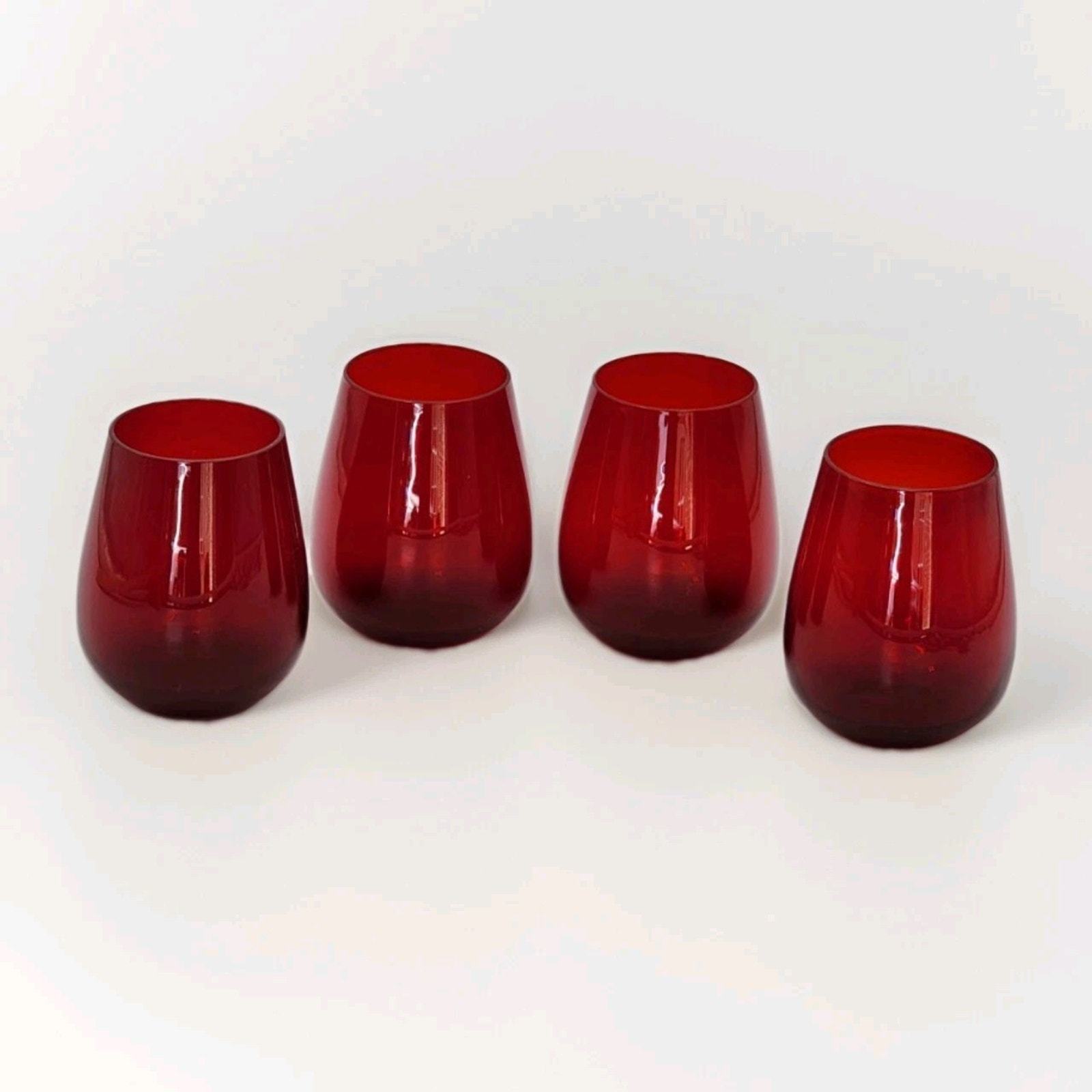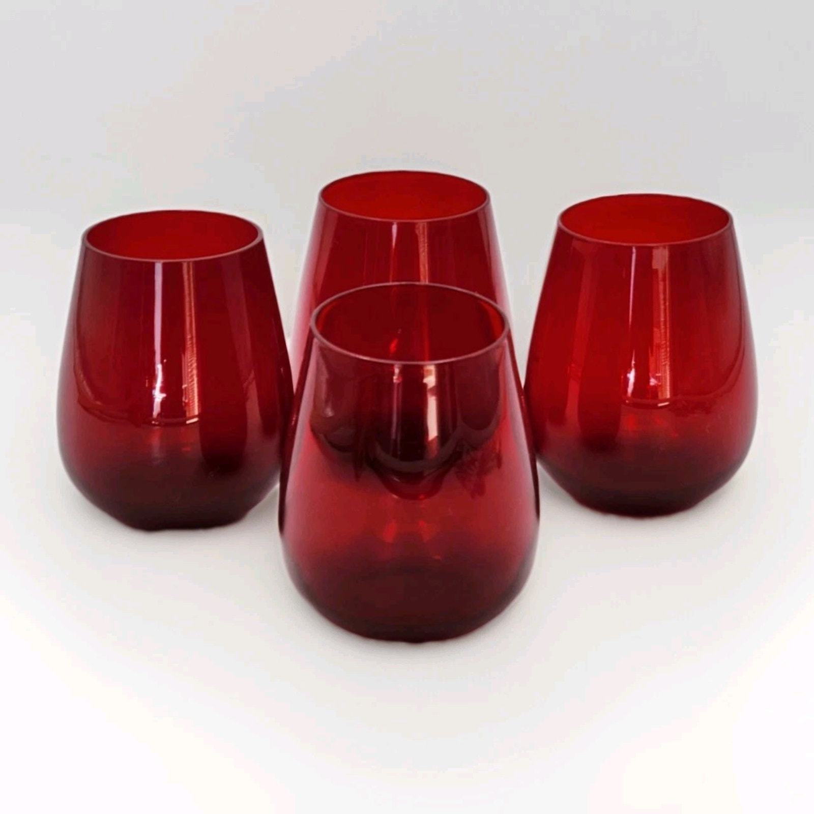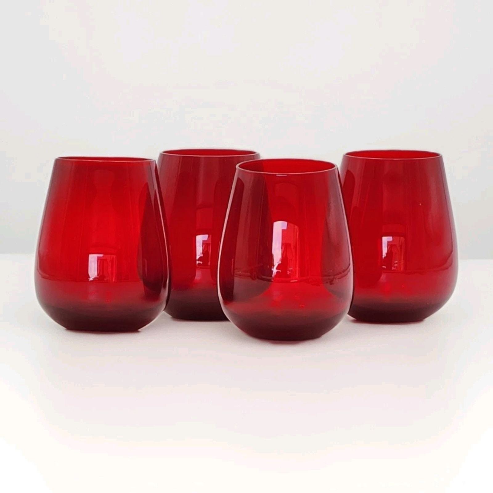 - Lenox Holiday Gems Ruby Stemless Wine Glasses 4 Pc Set 4 3/8" Tall W/Stickers