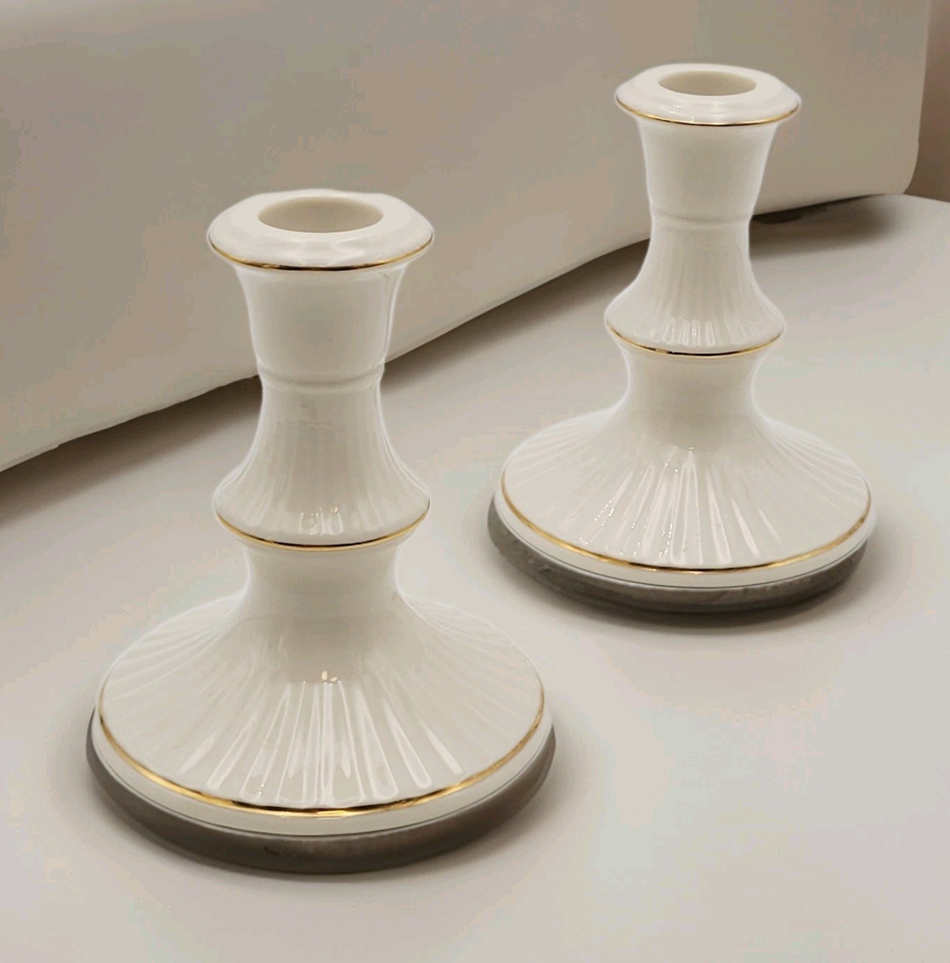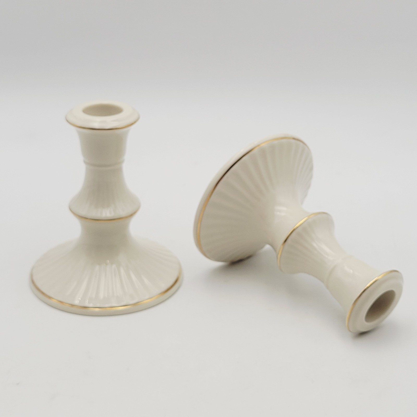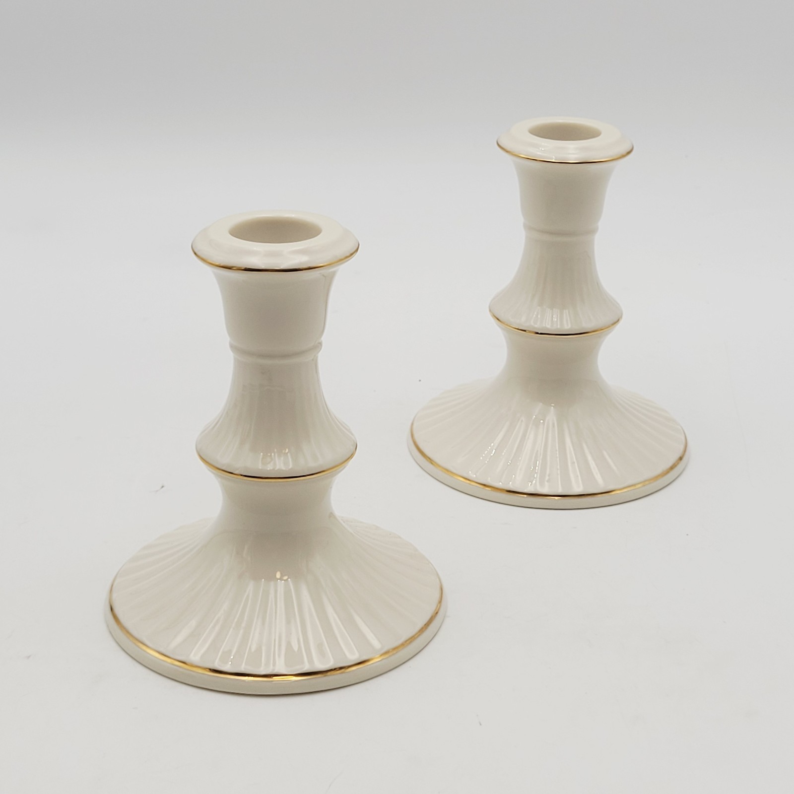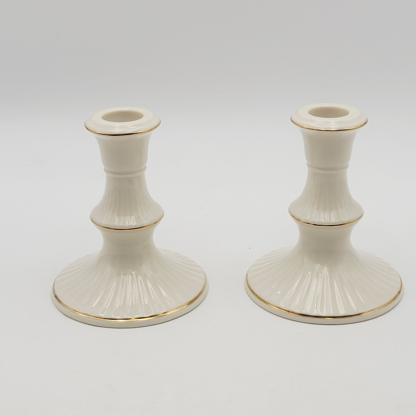 - Lenox Illuminations Candlestick Holders Ivory & Gold Set of 2 Vtg