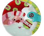 Add some festive cheer to your collection with this Lenox Jolly Santa Christmas Plate. 11.25 inches in diameter. The plate features a hand created glass fusion design that perfectly captures the spirit of the holiday season. The artwork depicts a jolly Santa Claus surrounded by snowflakes and presents, making it the perfect addition to your Christmas decorations.