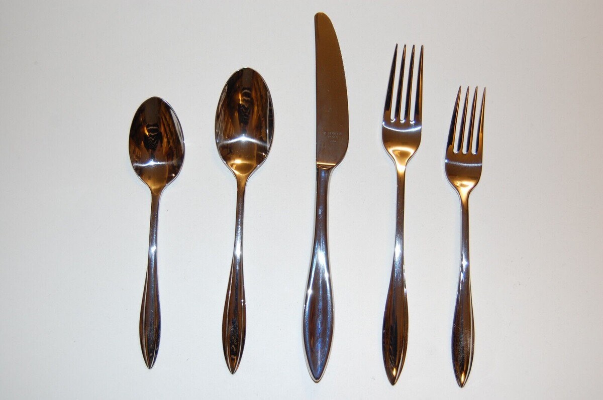 Each place setting includes place fork, place knife, place spoon, salad fork and teaspoon
