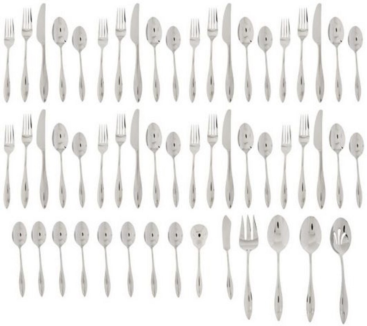 Host a great gathering. This set makes certain your eight guests have the utensils they need. Every piece matches perfectly, and that sets the table--and the tone--for a good time. The beauty of a traditional motif shimmers in the Marietta 54-Piece Stainless Steel Flatware Set. Perfect for casual and formal table settings, this set is masterfully crafted of tarnish resistant 18/10 stainless steel.