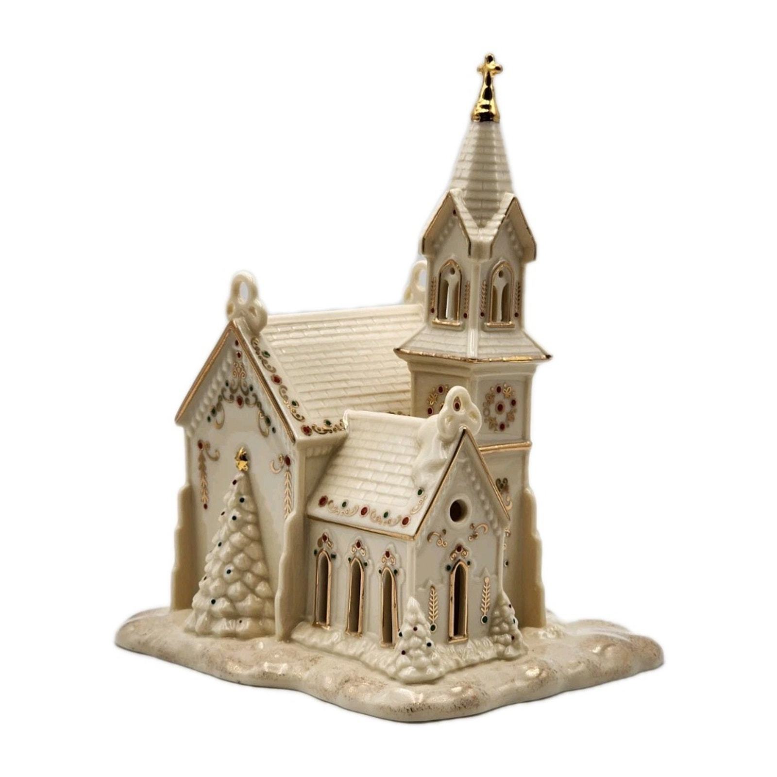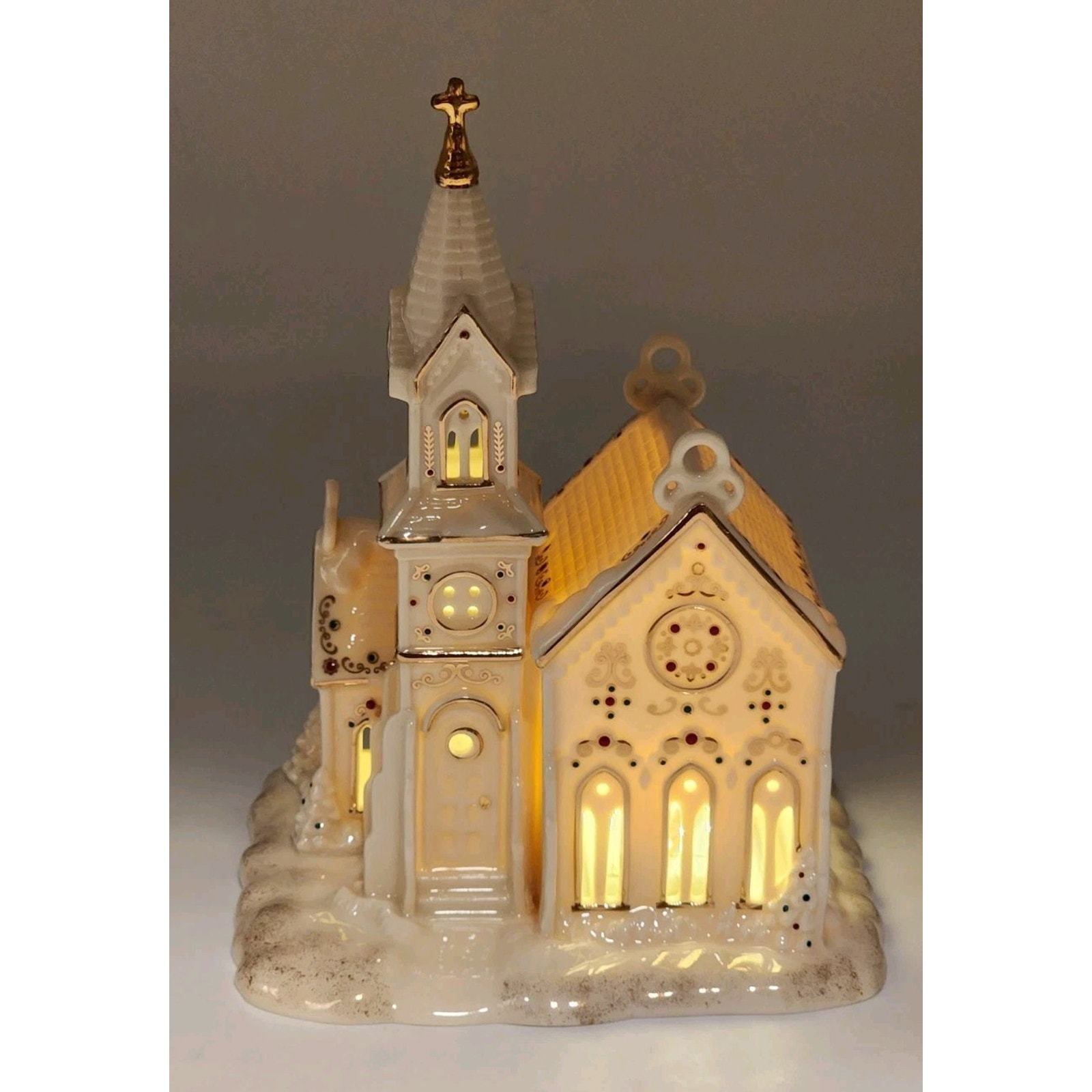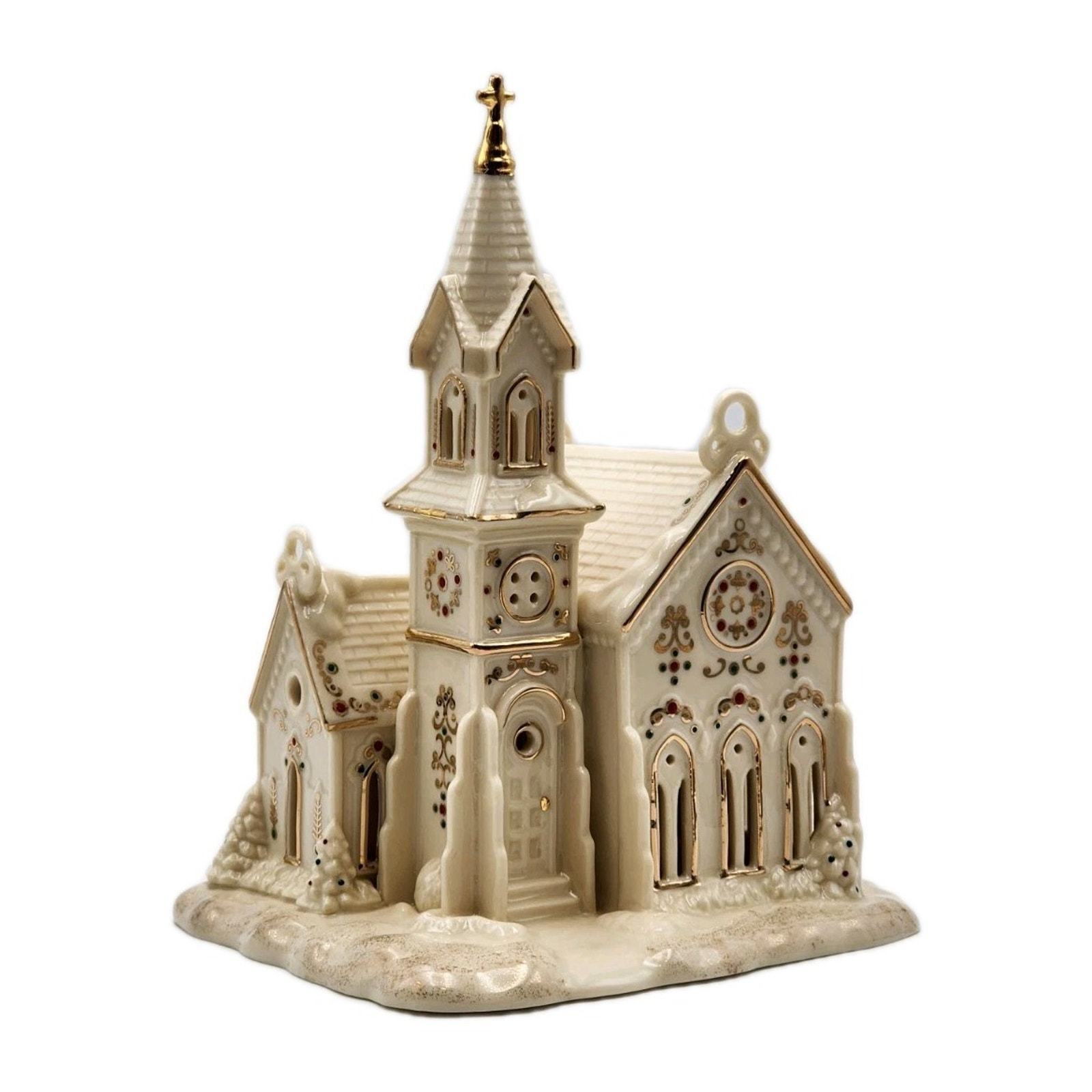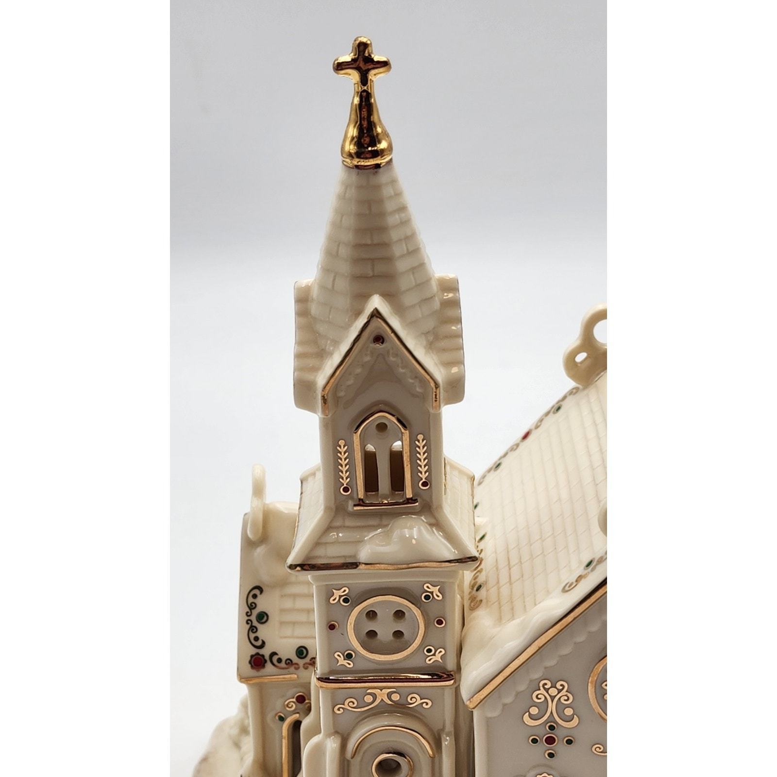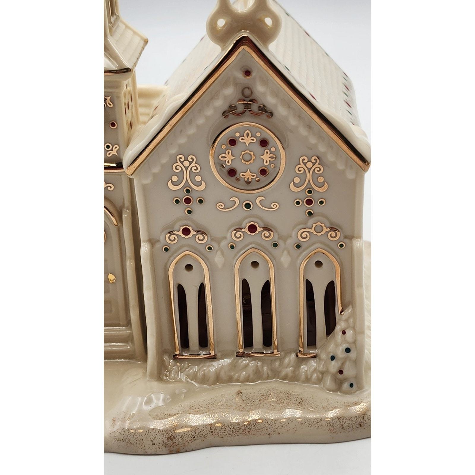 - Lenox Mistletoe Park Village Church Treasures 8.5" Ivory Lighted Gold Trim 2007