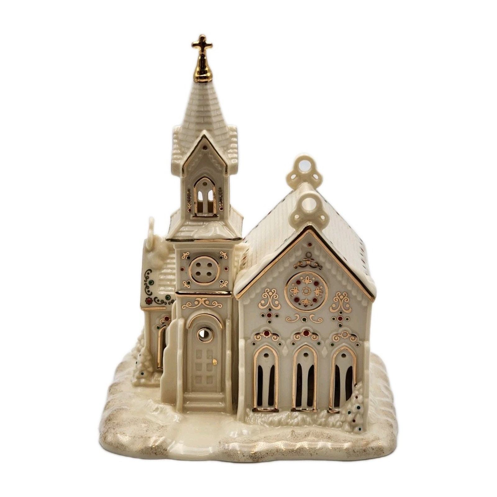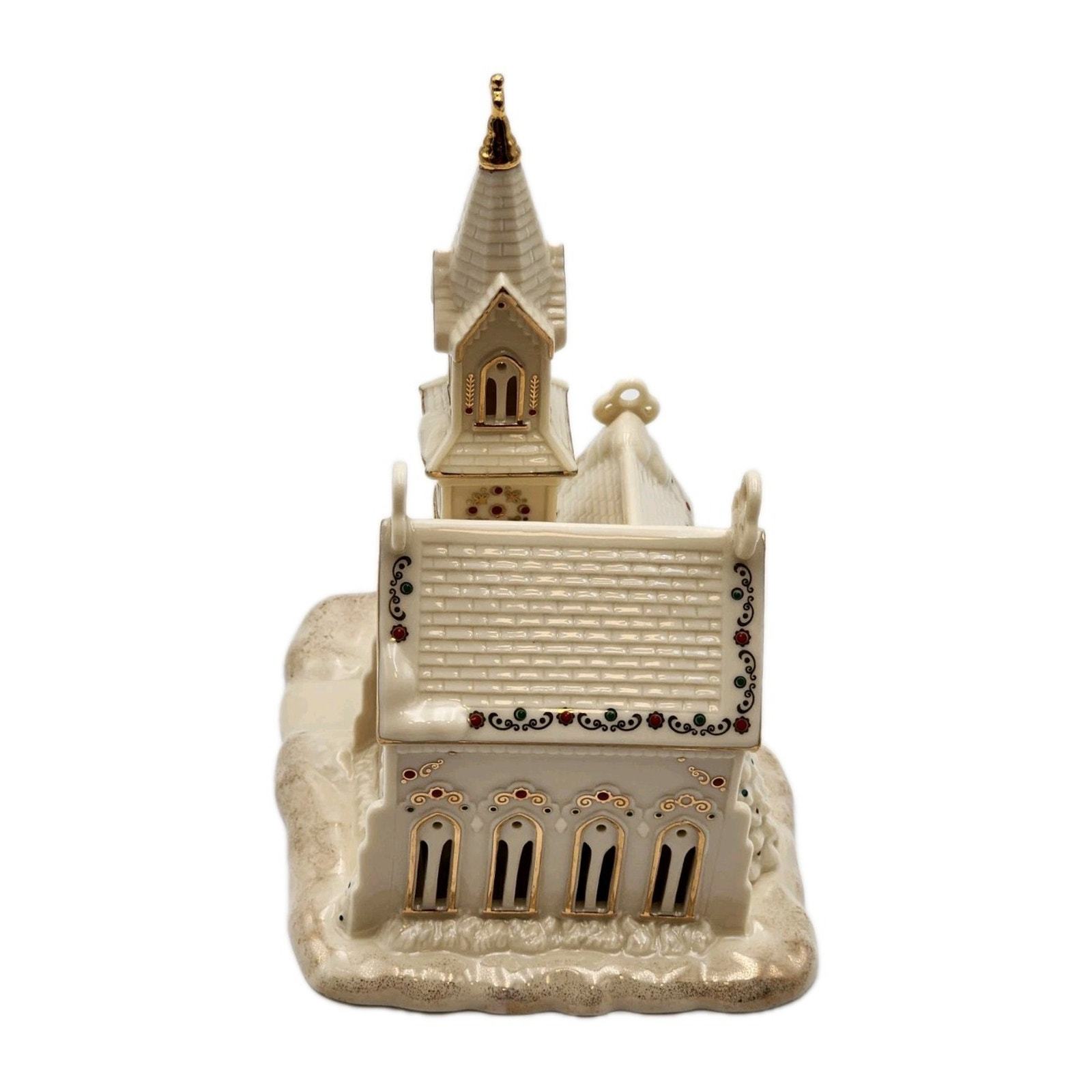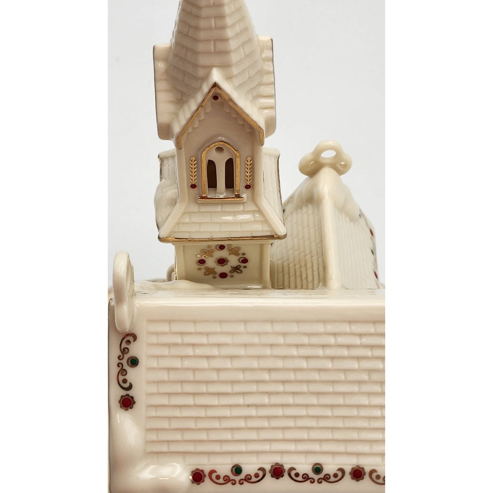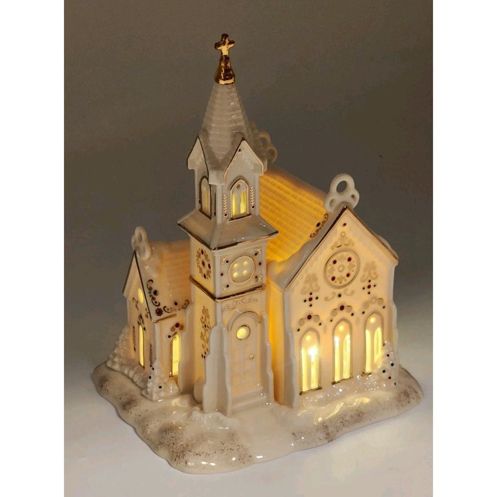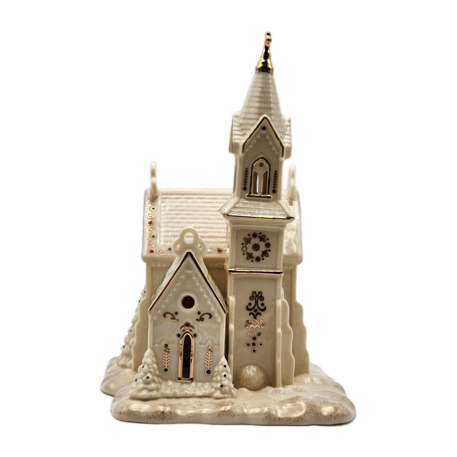 - Lenox Mistletoe Park Village Church Treasures 8.5" Ivory Lighted Gold Trim 2007