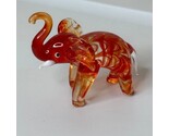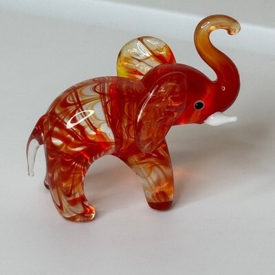 Keywords: glass elephant figurine, blown glass animal, swirl glass sculpture, red orange glass art, collectible animal figurine, decorative desk accessory, unique home decor, miniature glass elephant, glass animal collectible, handmade glass art