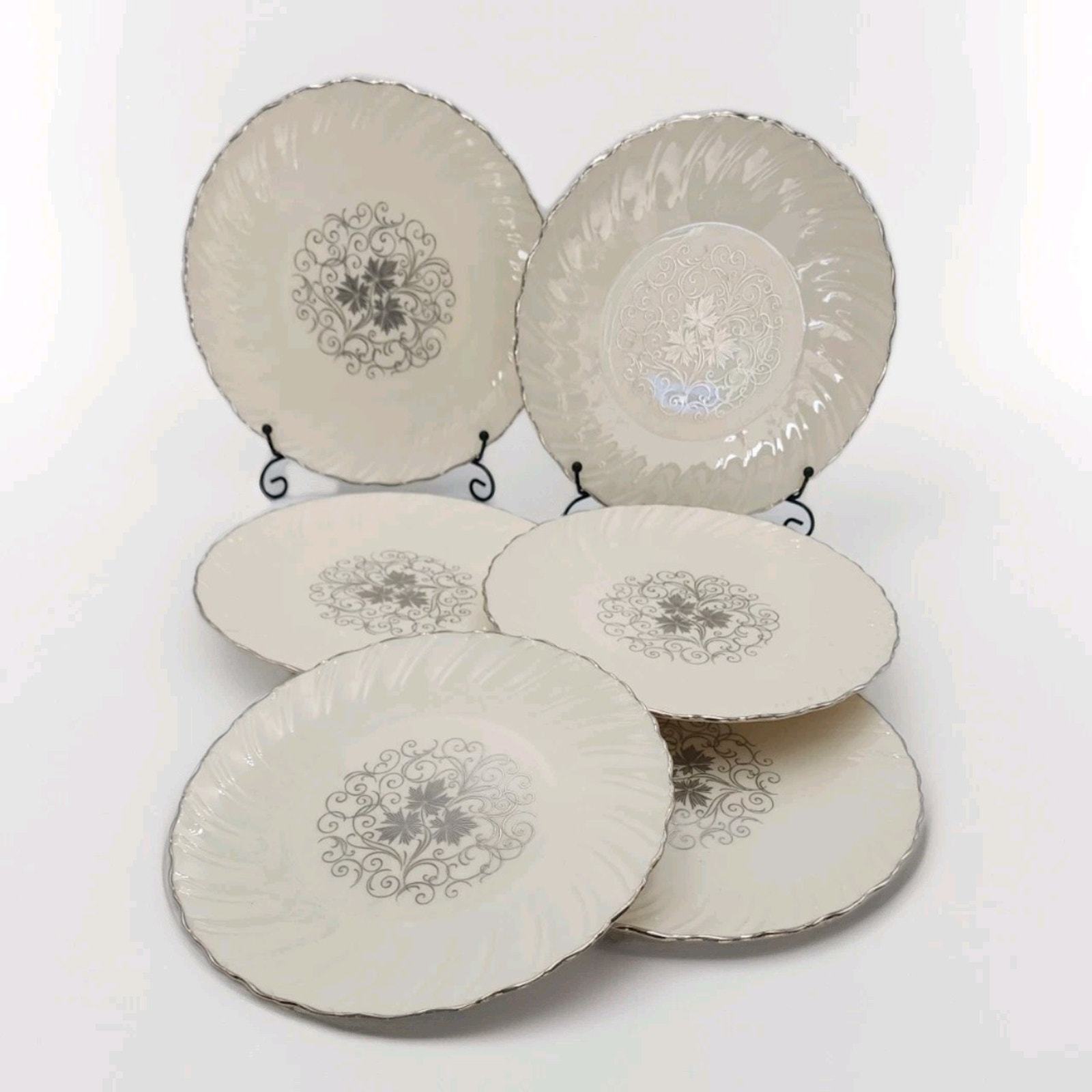 Lenox Valera Fine China Dinner Plates 10 1/4” Platinum Trim 1961-77 Lot Of 6