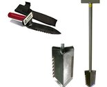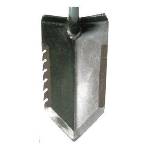 This double-edged digger has a saw tooth edge on one side to cut through roots and a sharpened edge on the other to cut through tuff grass and dirt. The Lesche digging tool has a comfortable rubber grip handle with hand guard plate. Will cut plugs in soil quickly. The digger is 12" overall and made in the USA out of Chrome-Moly steel. Comes with a FREE Cordura belt sheath.
