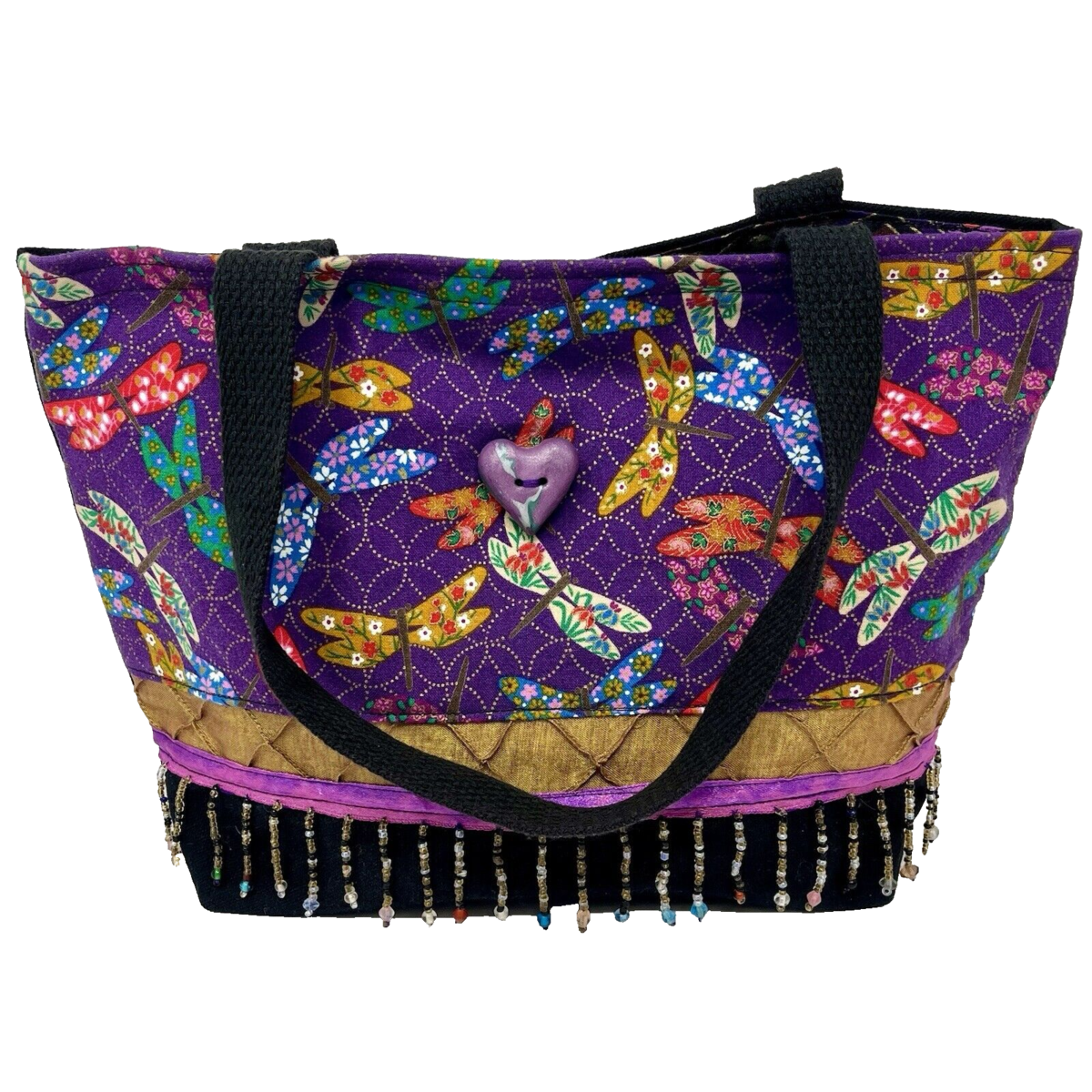- Leslie Andersen's Happy Hour Designs SmallFabric Tote with Beaded Fringe
