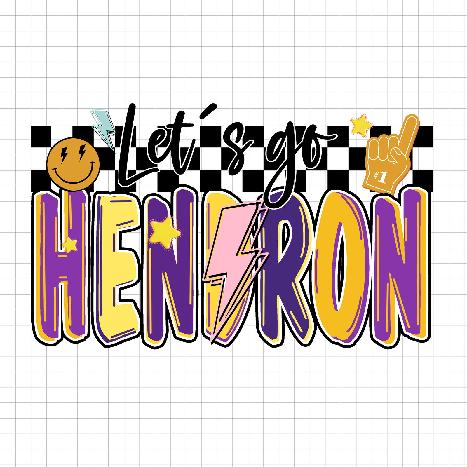 Let’s Go Hendron PNG Retro Mascot PNG Lightning Bolt Checkered School Spirit PNG, Trending Design