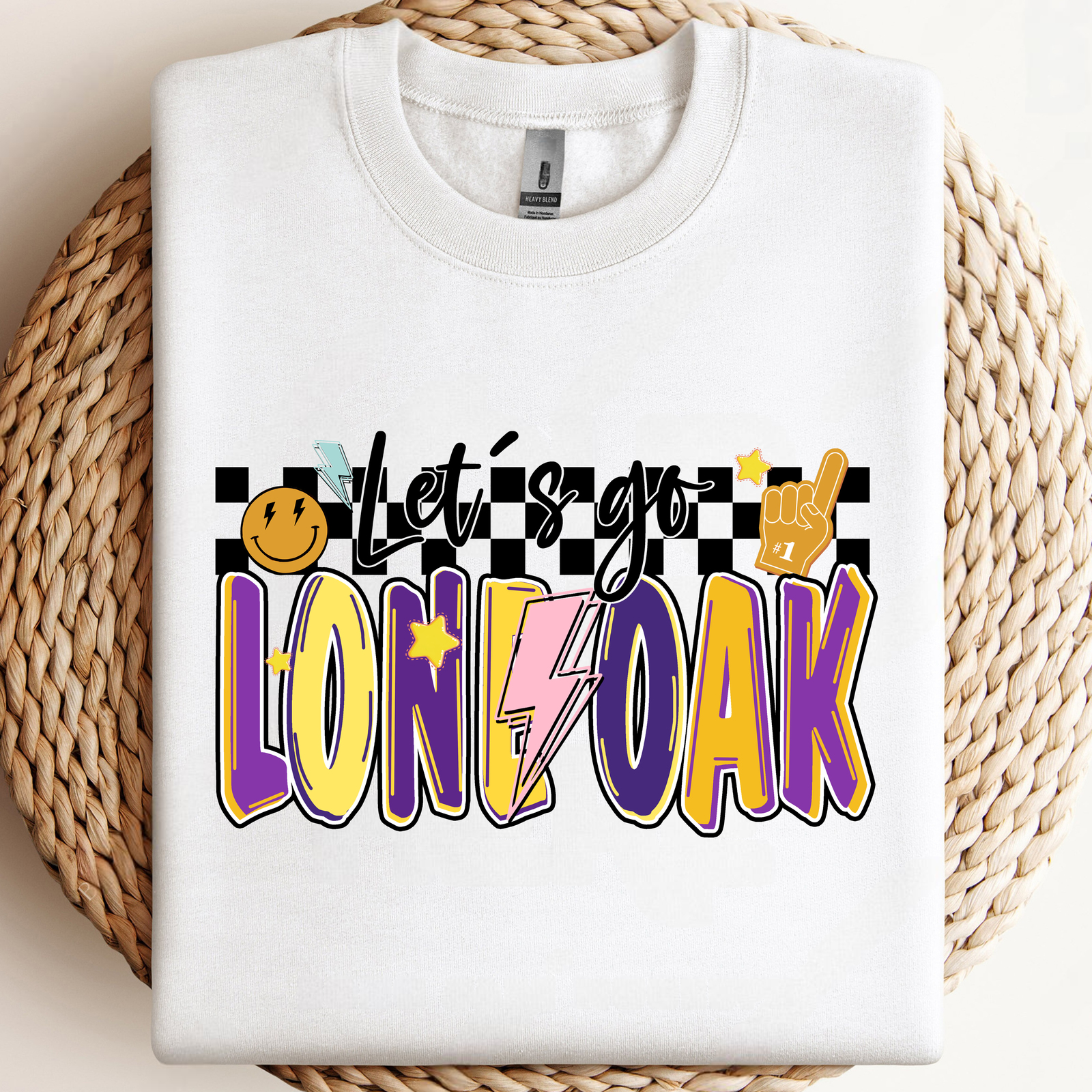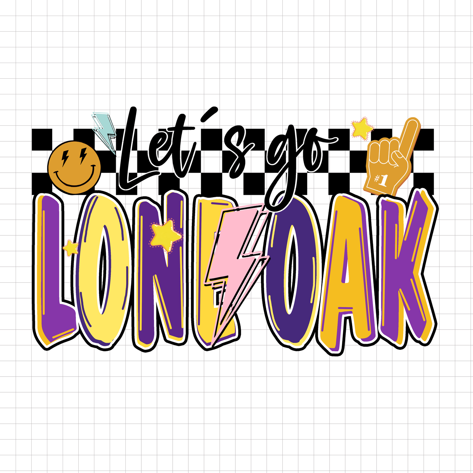 Let’s Go Lone Oak PNG, Retro Mascot, Lightning Bolt Checkered School Spirit PNG, Trending Design