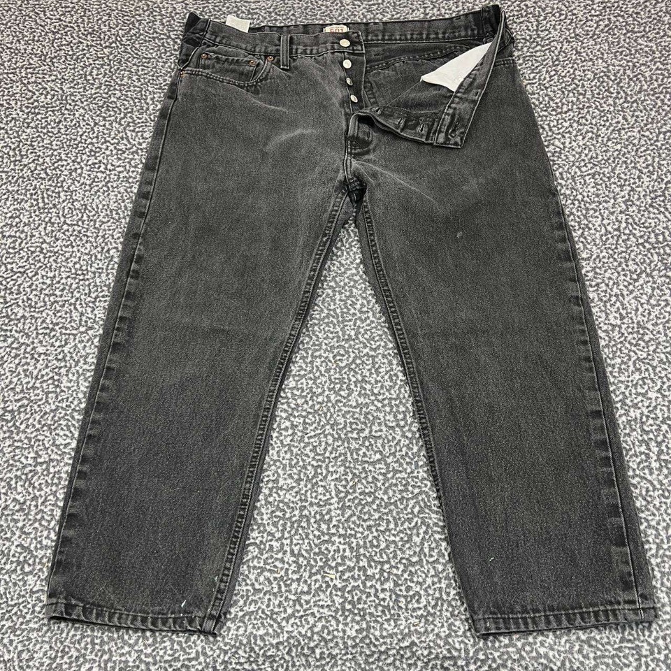 - Levi's 501 Jeans Men 42x30 Black Straight Button Fly Denim Pants Pockets