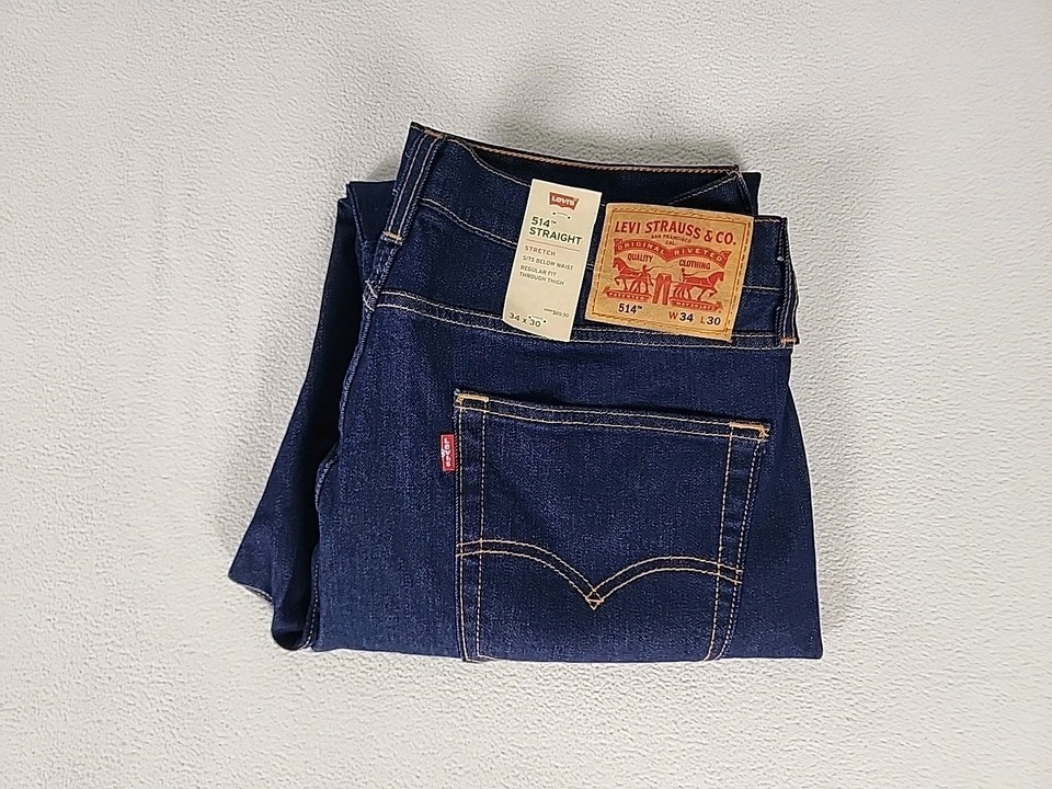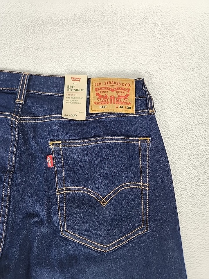 - Levi's 514 Regular Fit Zip Fly Straight Leg Denim Jeans 34X30 Men's Blue Stretch