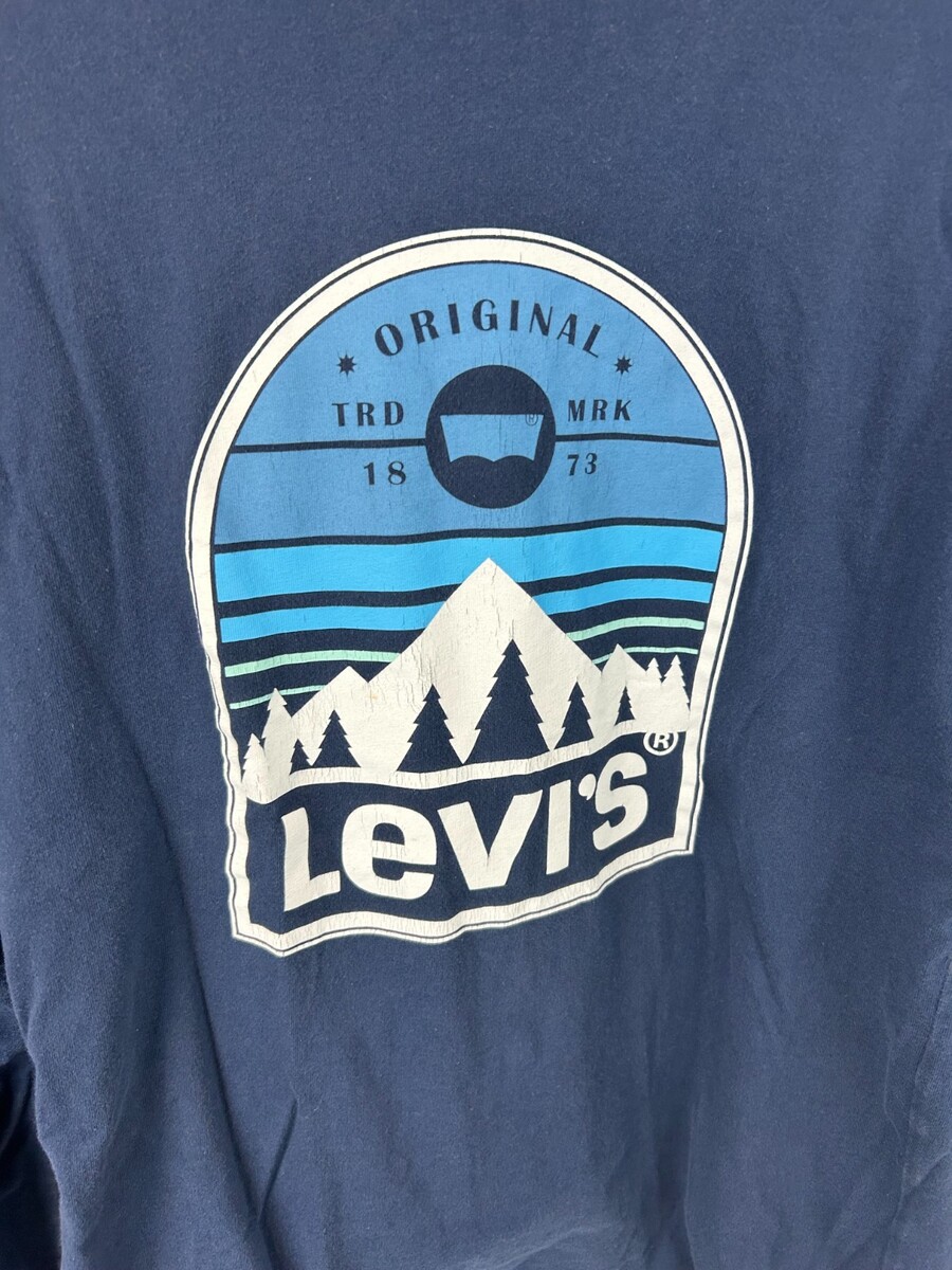 - Levi’s Men’s Medium Long Sleeve Blue Graphic T-Shirt Mountain Logo 100% Cotton