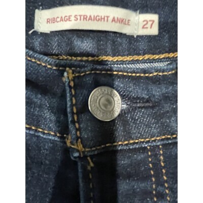 - Levis Jeans Womens 27 Blue Ribcage Straight Ankle Button Fly Dark Wash Denim