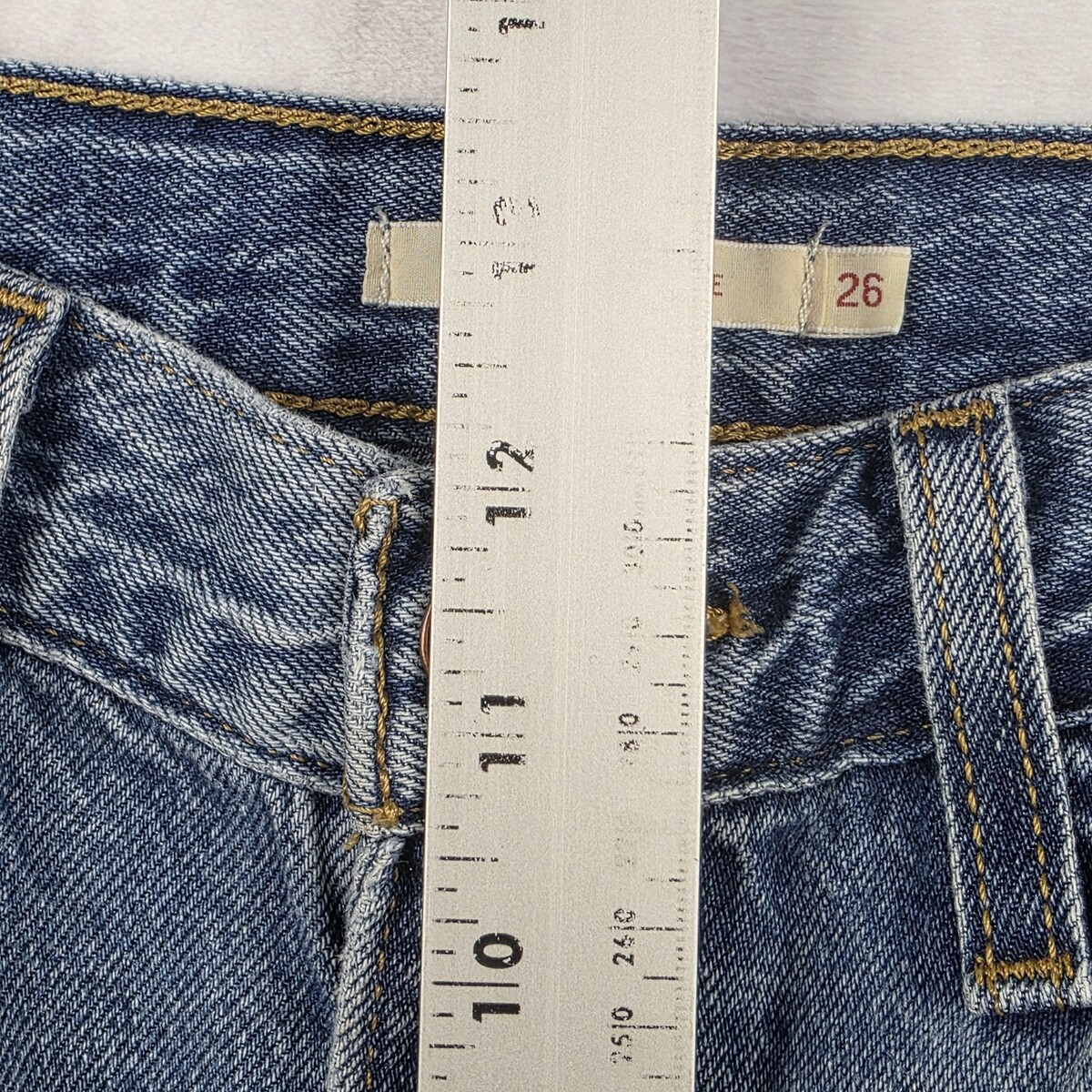 Levis Premium Jeans Womens Size 26 High Loose Flare Distressed Light Wash Blue