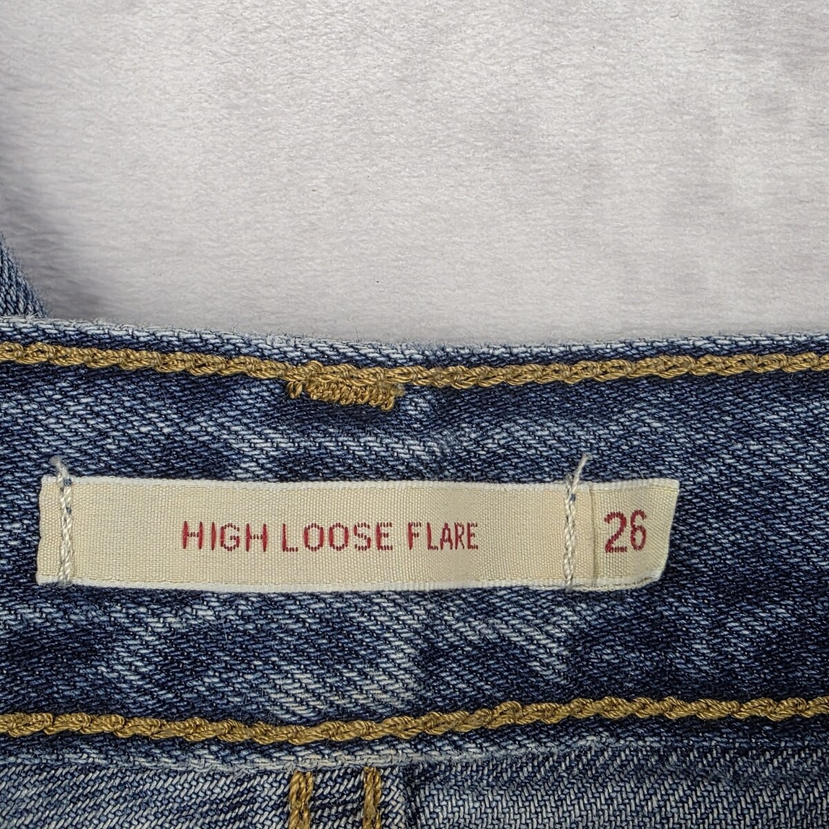 - Levis Premium Jeans Womens Size 26 High Loose Flare Distressed Light Wash Blue