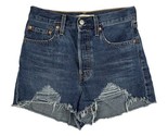 Levis Premium Shorts Womens Size 27 Ribcage Short Button Fly Blue Distressed