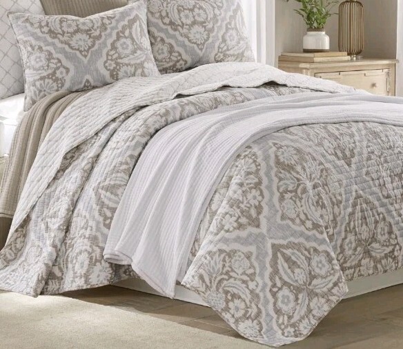 - Levtex Home King Size Becker Taupe Quilt Set With 2 King Shams Reversible