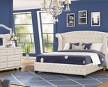Upholstered bed features a diamond tufted headboard providing a soft and inviting place to lean back and relax comfortably