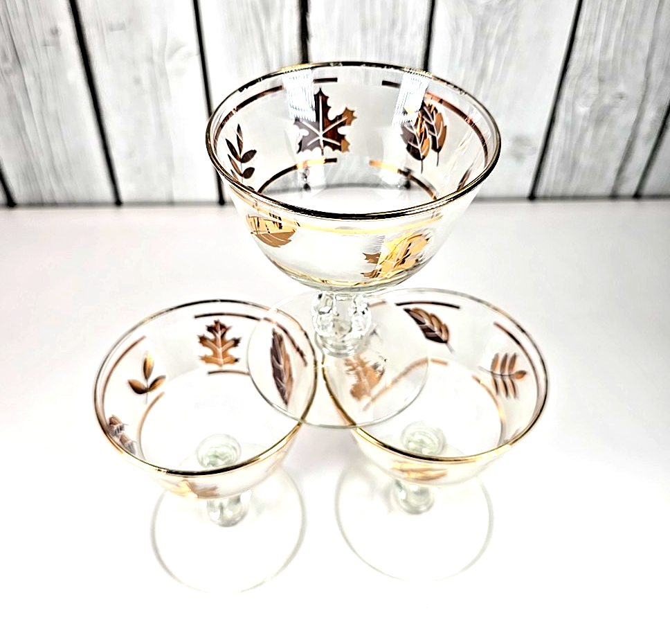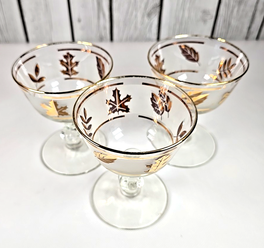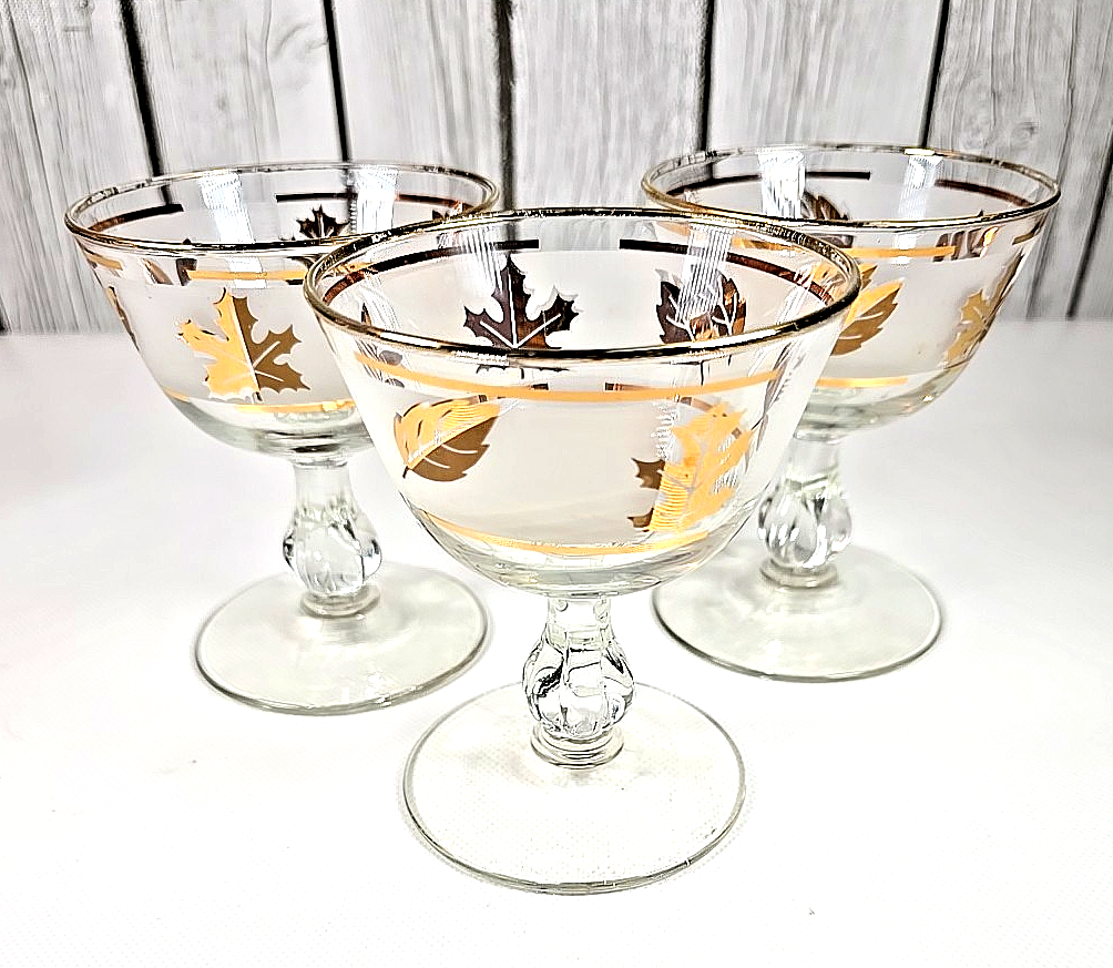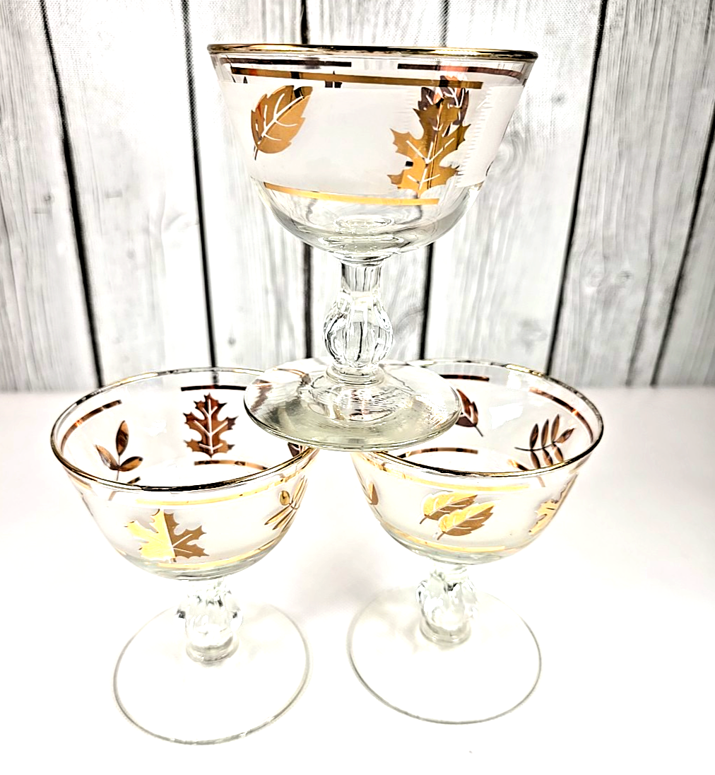 - Libbey Frosted Gold Leaf Oak Maple Wine Glasses Set of 3 Mid Century USA