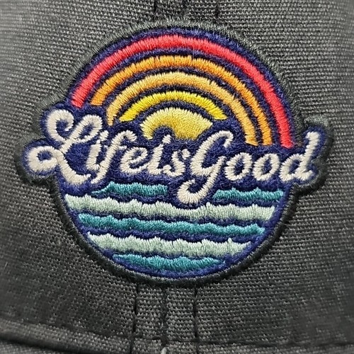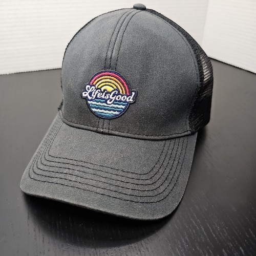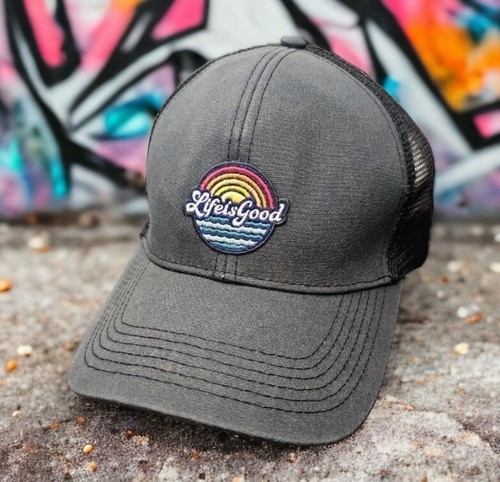 - Life Is Good Hat Cap Trucker Mesh Snapback Rainbow Gray Logo Mens