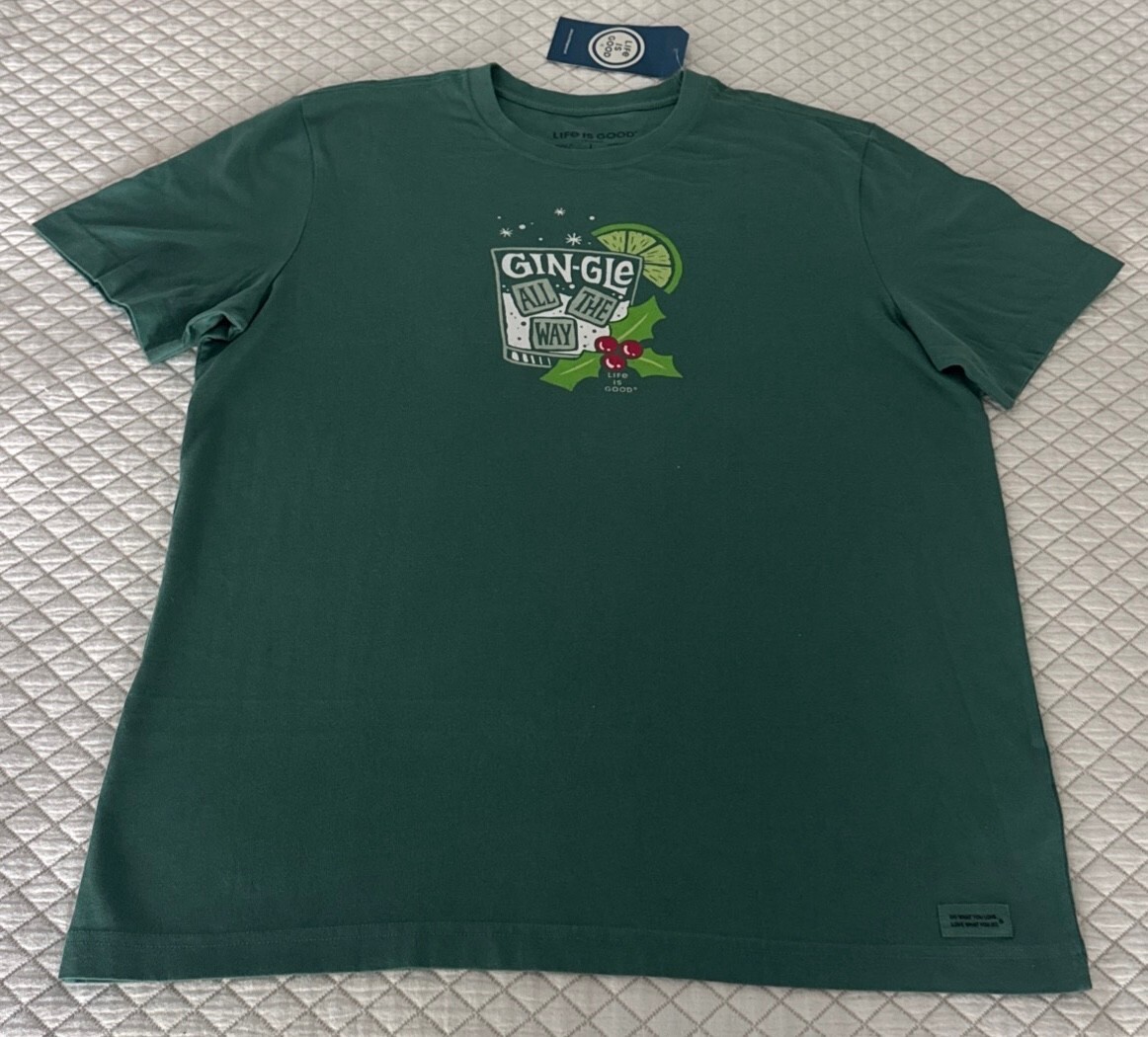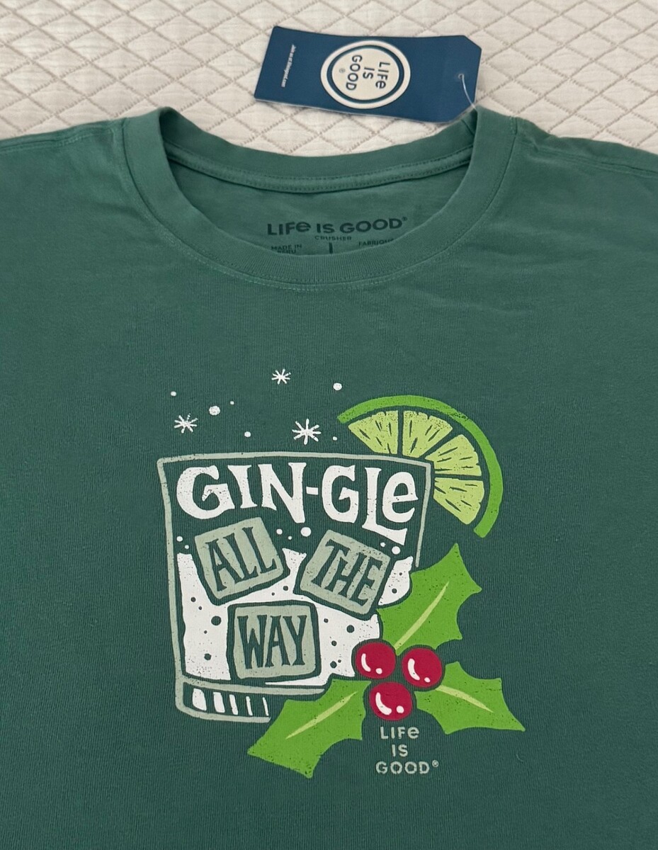 - Life Is Good T Shirt Mens Green Short Sleeve “Gin-Gle” All The Way Christmas L