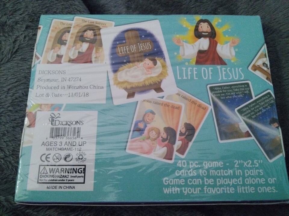 The Life of Jesus Matching Game by GAME is a contemporary manufactured board game that aims to educate players about the life of Jesus through a fun and interactive matching game. This game likely features cards or tiles with various events or teachings from the life of Jesus, and players must match them based on their significance or connection to one another. It offers a unique way for individuals to learn about the life of Jesus in a lighthearted and engaging manner.
