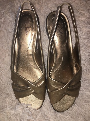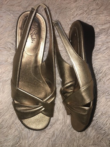 - Life Stride BY SOFT SYSTEMS Sling BACK Sandal Heels GOLD SZ 9 M NEW