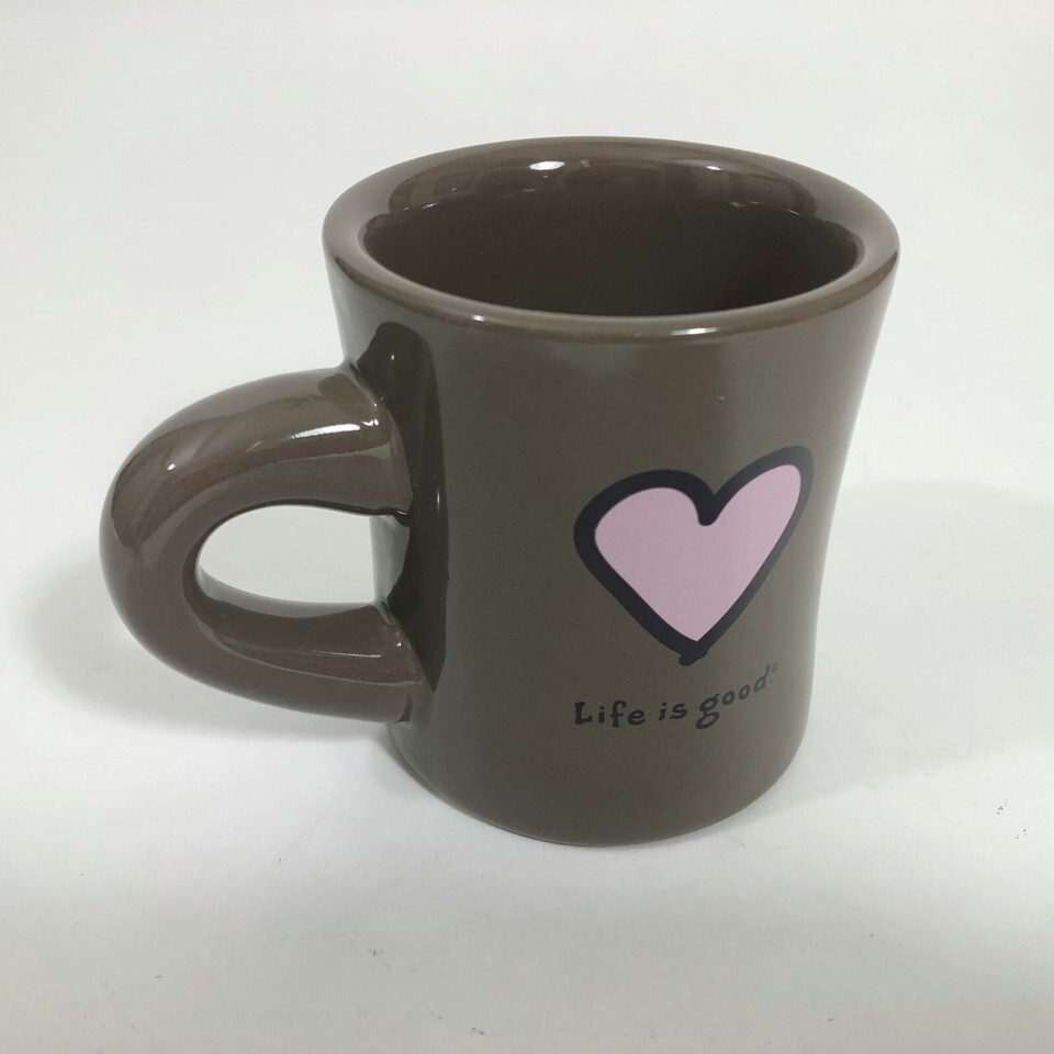 EUC, Excellent Used Condition. Life is Good brown with a pink heart mug has no stains, cracks or chips. Life is Good logo under a pink heart on one side and Life is Good slogan "Do what you like. like what you do" on the other side. It is a thick heavy weight diner style mug. Great for coffee, hot chocolate or spiced cider! Can't help but feel happy with this cute mug. Check out the pictures.