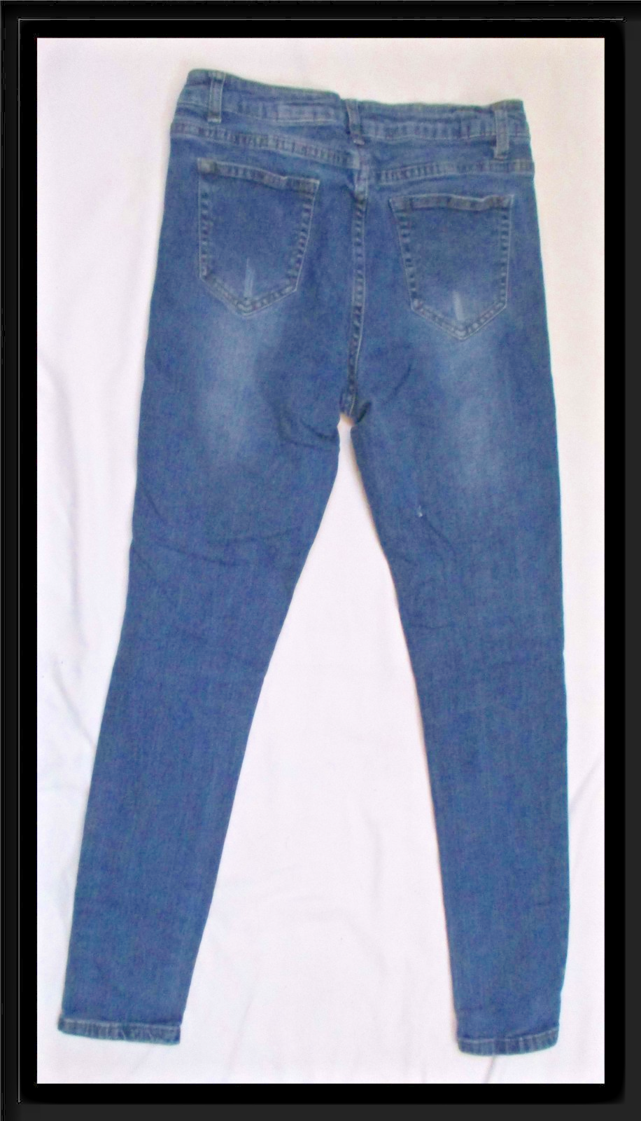 The product is a pair of Lifo ladies fashion jeans in size 7 with a distressed look. These skinny jeans feature a 29" mid-rise waist and a 26" inseam, making them perfect for a juniors department. The denim fabric in a classic blue color adds a stylish touch to any outfit. Made by the brand Lifo, these jeans offer a trendy and versatile option for women looking to stay on top of the latest fashion trends. Same or next day ship.