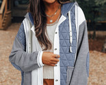 - Light Blue Quilted Textured Patchwork Loose Fit Hooded Jacket