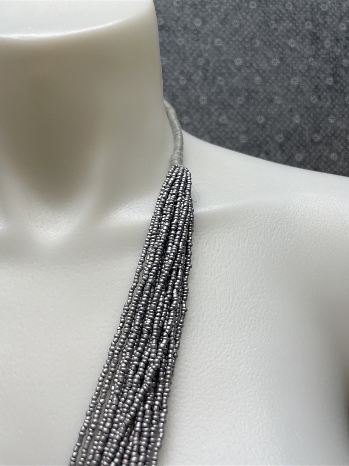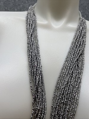- Light Gray Multi Layered Beaded Necklace Estate Jewelry Find KG JD