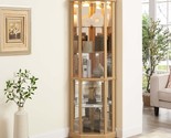 - Lighted Corner Curio Cabinet - Elegant Glass Display Case, Light Oak