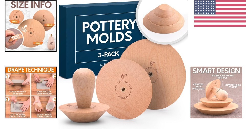 Unlock your creativity with our Lightweight 3-Pack Pottery Molds, expertly designed to cater to both novice and seasoned ceramic artists. These molds offer versatility in both shape and size, allowing you to experiment freely while achieving stunning, professional-quality results. The interchangeable handles provide maximum comfort, making extended creative sessions enjoyable. Transform your pottery-making experience into an artistic journey and create remarkable dishes that showcase your unique style. Don't miss the chance to elevate your pottery craft ? order your 3-Pack Pottery Molds today!