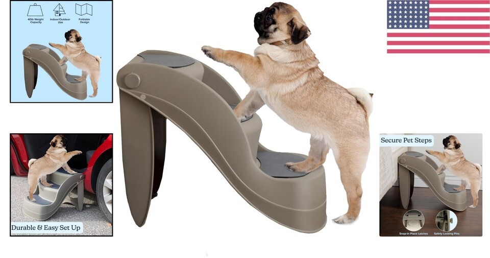 - Lightweight 3-Step Dog Stairs with Safety Lock - Perfect for Pets Up to 40lbs