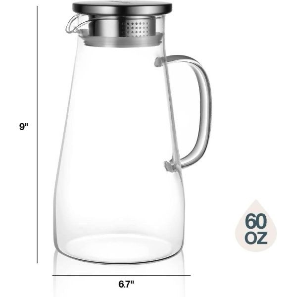 - Lightweight 60 oz Glass Pitcher With Stainless Steel Lid Hot Or Cold