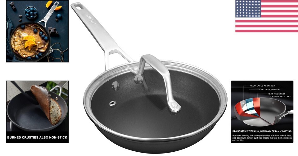 Scratch-Resistant: The omelet pan's body is resistant to scratches from hardwood spatulas at temperatures up to 700F, while the lid is made of shatterproof tempered glass for added safety.