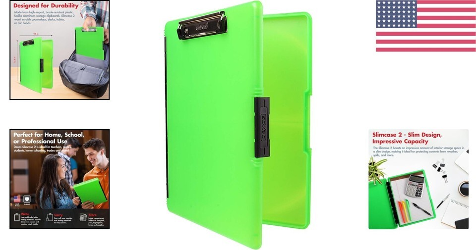 Elevate your organization game with the sophisticated neon green Clipboard with Storage and Side Opening Slimcase. This clipboard is not just an accessory; it?s a statement of efficiency and style that caters to your every organizational need.