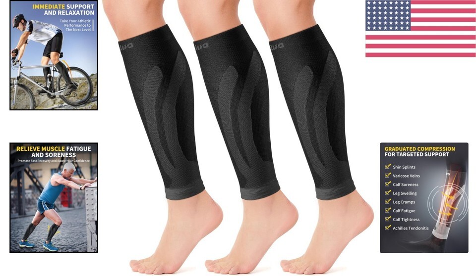 - Lightweight Calf Compression Sleeves for Sports & Recovery - 3 Pairs Included