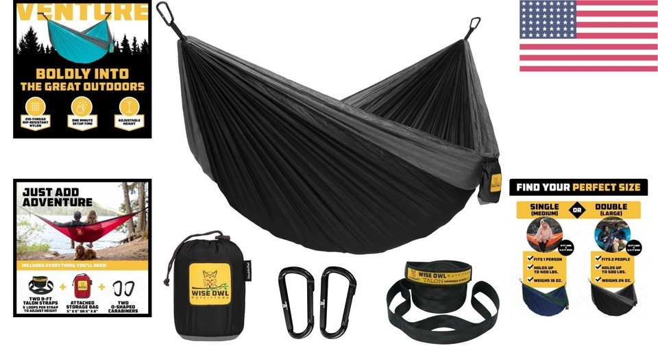 - Lightweight Double Hammock for Travel & Outdoor Fun - Easy Setup, 500lbs Limit
