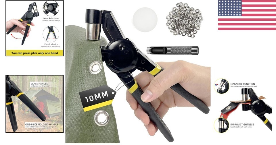 - Lightweight Grommet Setter with Automatic Return - 500pcs 10mm Grommets Inside