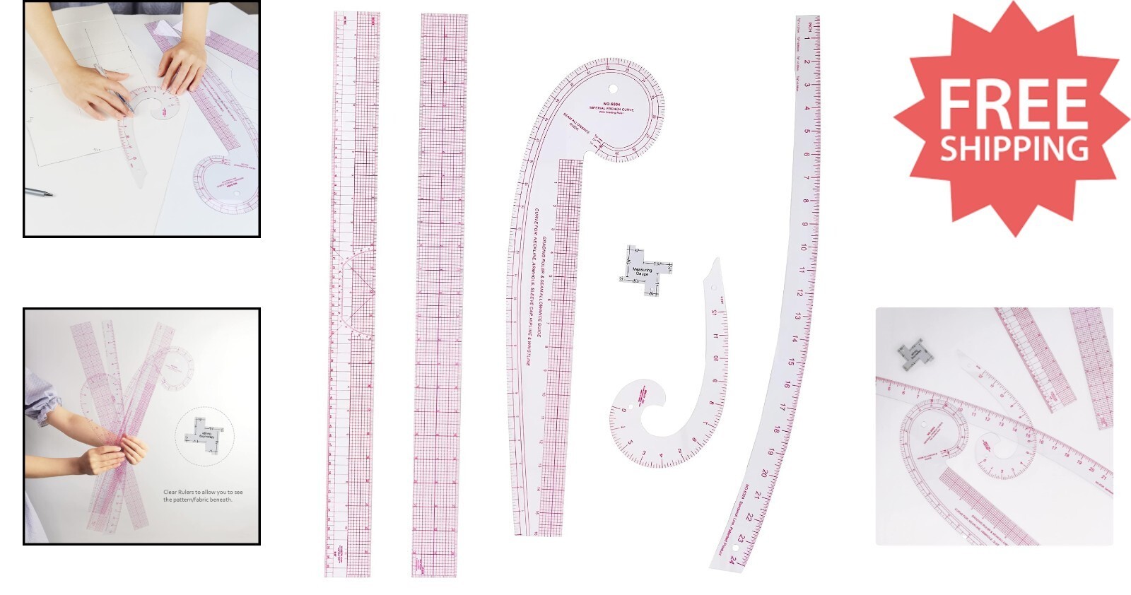 - Lightweight Plastic 6-Piece Ruler Set with Easy Markings – Essential for Sewists