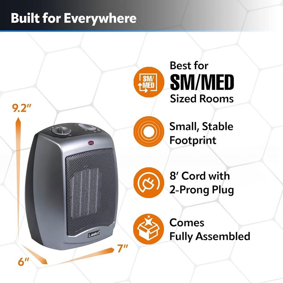 Compact Design: Measuring just 9.2 x 7 x 6 inches, this mini heater is perfectly sized to fit on or under desks, making it ideal for home offices or cozy corners of your home.