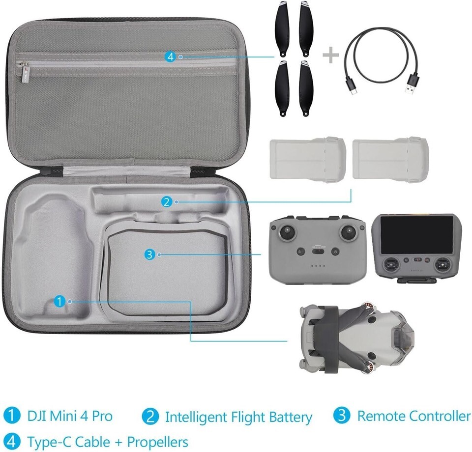 - Lightweight Protective Case for DJI Mini 4 Pro with Removable Foam Storage